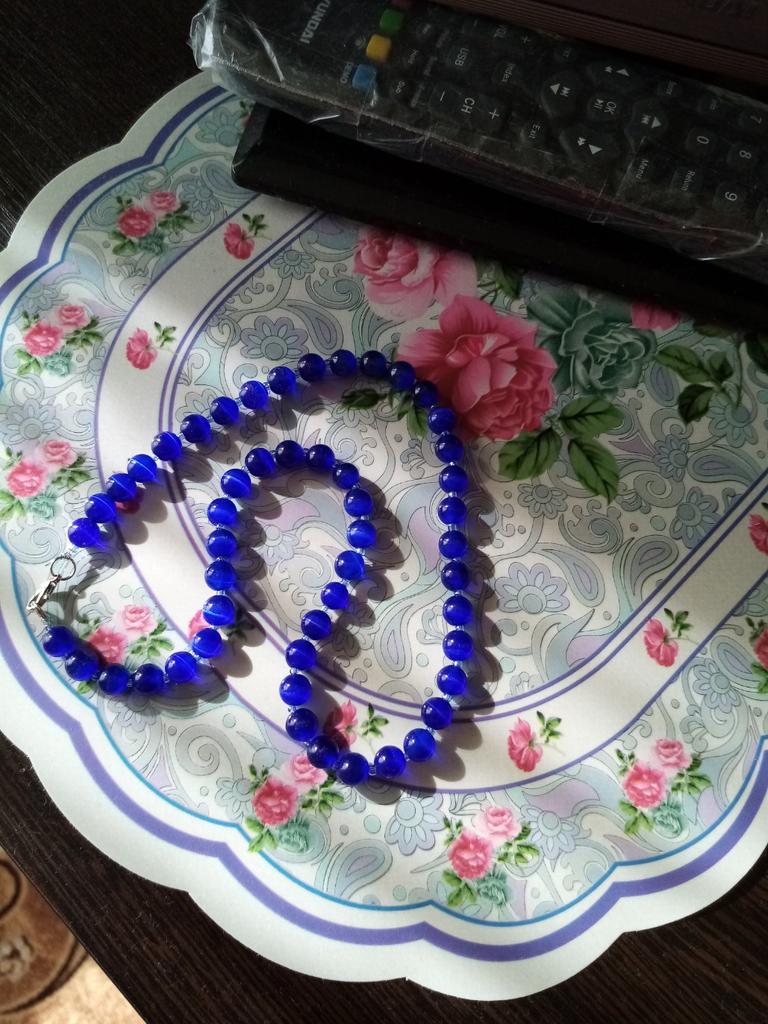 Beautiful color. Brighter than in the photo. 38cm. Fits snugly around the neck. Smooth, without chips, stone.