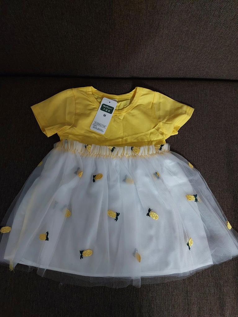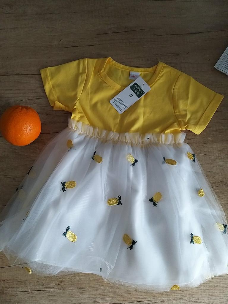 Baby Girl Pineapple Printing Short Sleeve Princess Mesh Dress