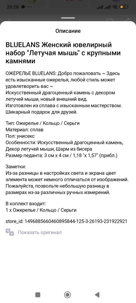 Be careful - it says “Women’s jewelry set “Bat” with large stones” but only a pendant arrived.