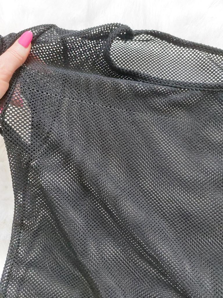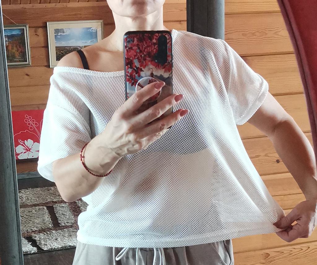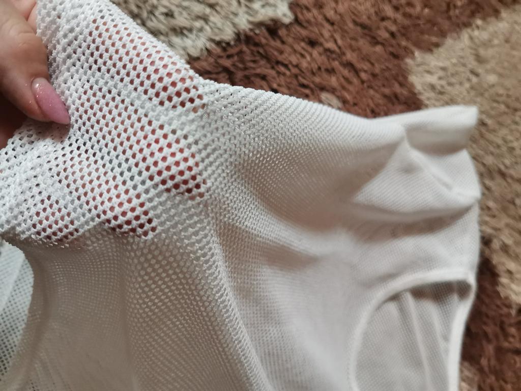 Good quality mesh. I wear size S, but I purposely took size M for the gym, the top looks very cool.