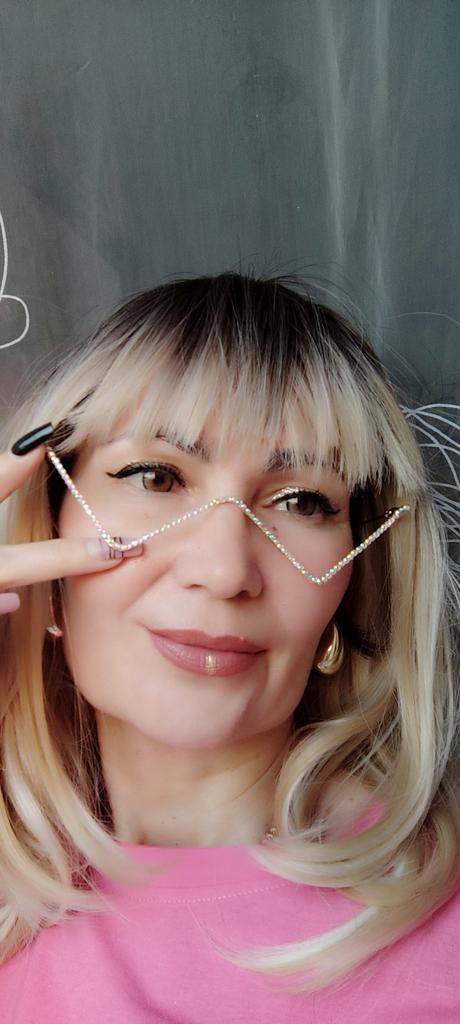 SHAUNA Ins Popular No Lens Crystal Eyeglasses Frames Women Decorative Punk Triangle Frame