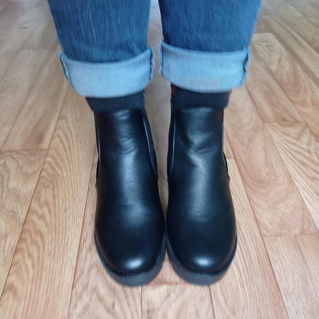 Fits snugly on 37, can be worn with thin socks