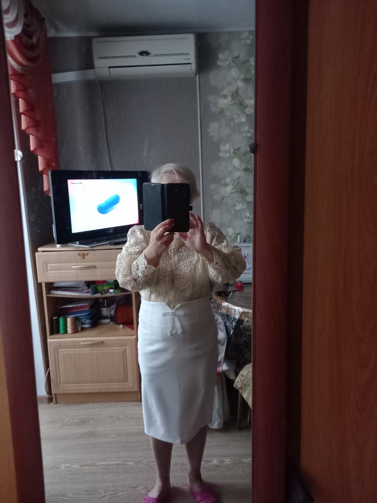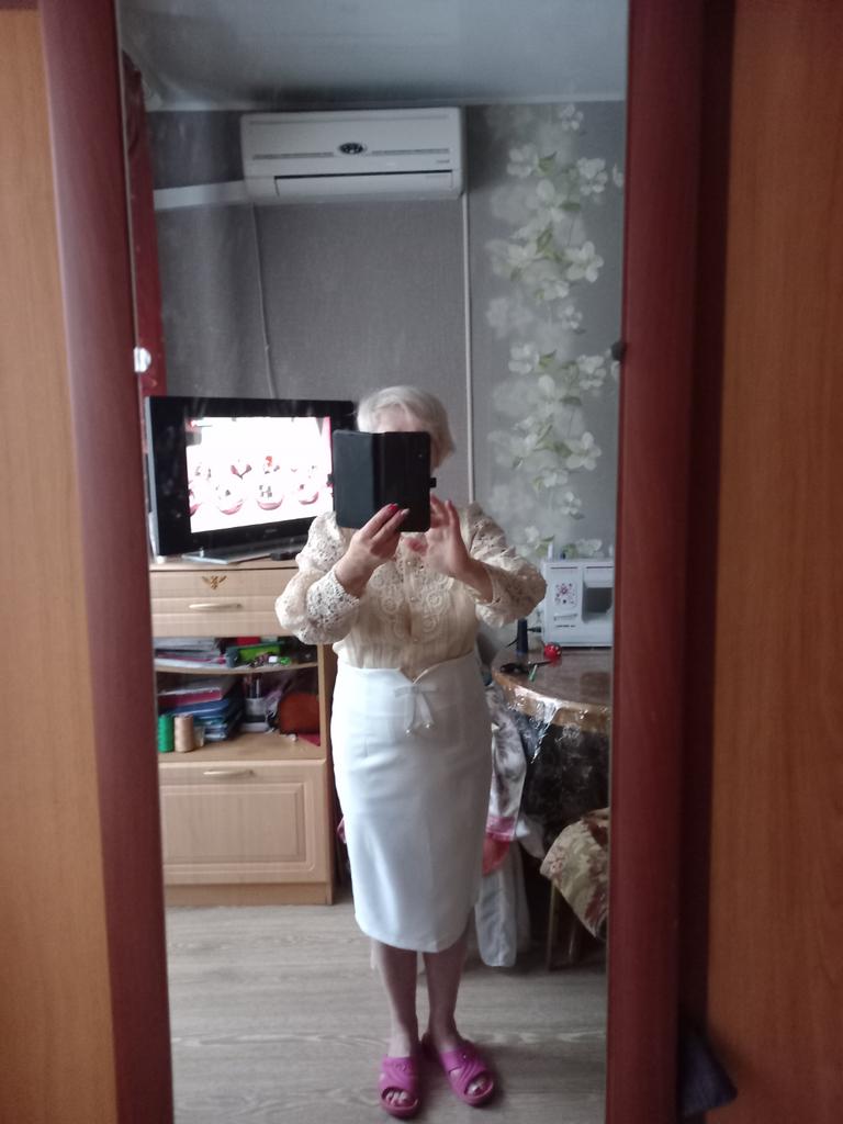 The skirt is beautiful, according to the size grid I took xl, because there were no reviews at all, you could safely take l, because there is a margin in the waist and hips, on my hips I have 93 cm. I wear s. I recommend the seller.