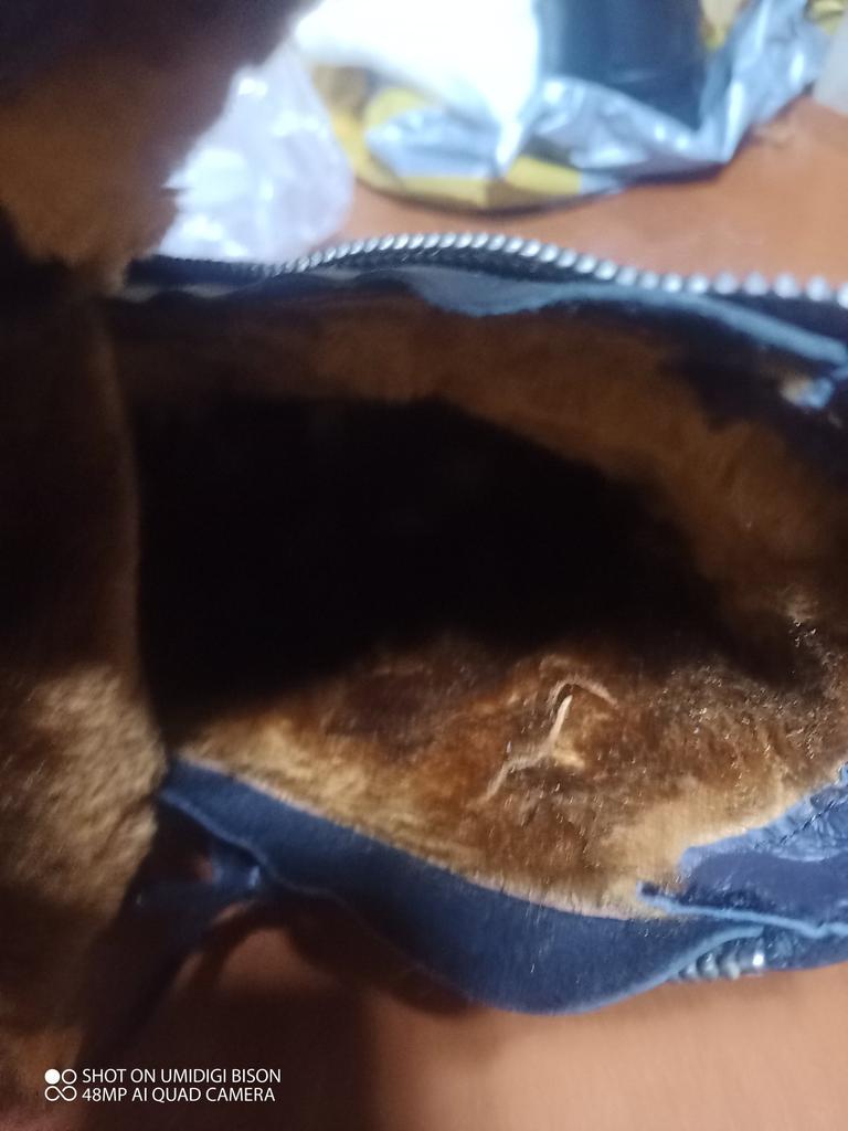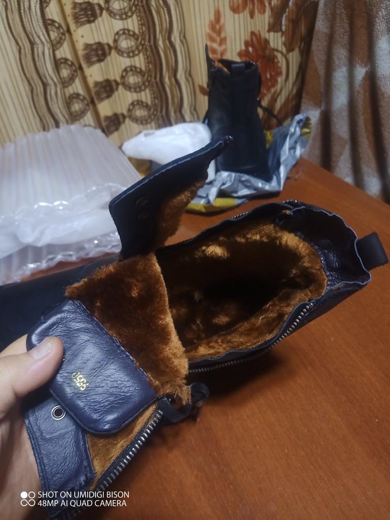 Great boots! On the leg like a glove. The fur is natural and very thick... soft and comfortable on the foot. I took one size larger...