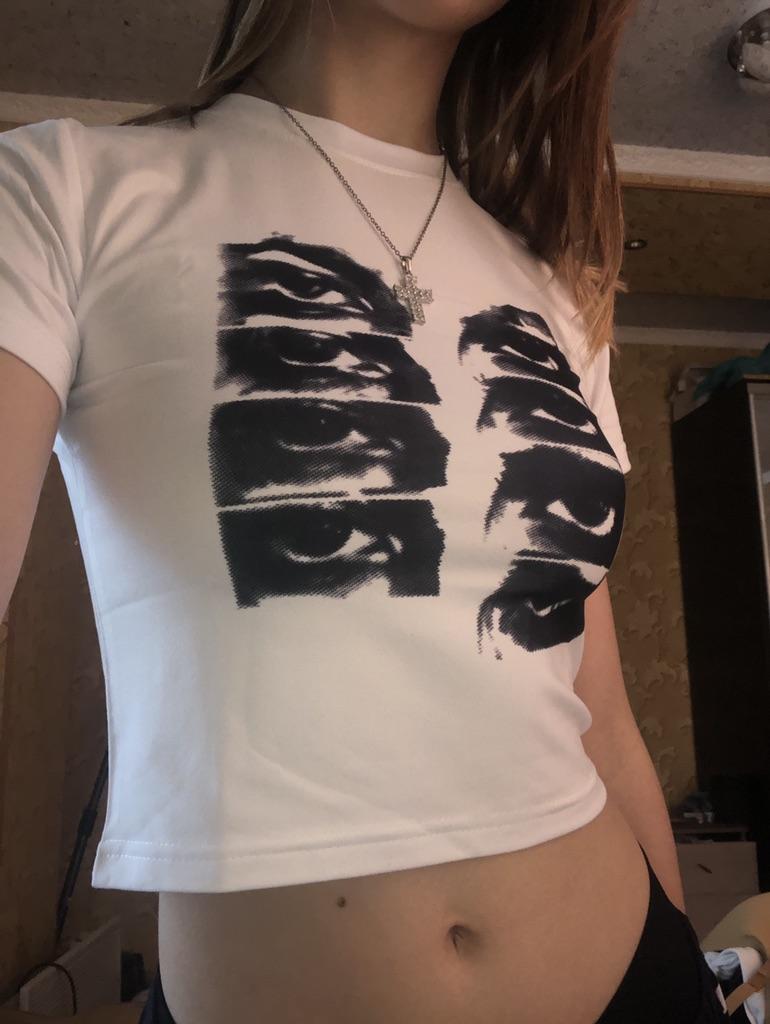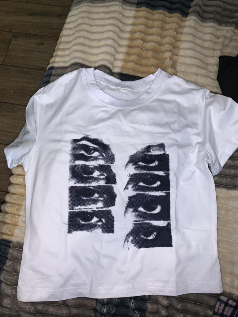Vintage Short-sleeved T-shirt Female Y2k Aesthetic Graphic Eye Print Crop Top Streetwear Harajuku O-neck Gothic Tee Slim