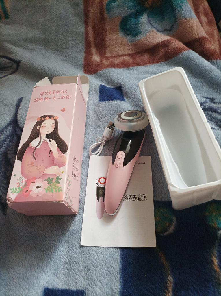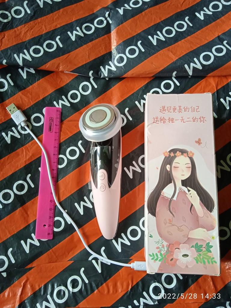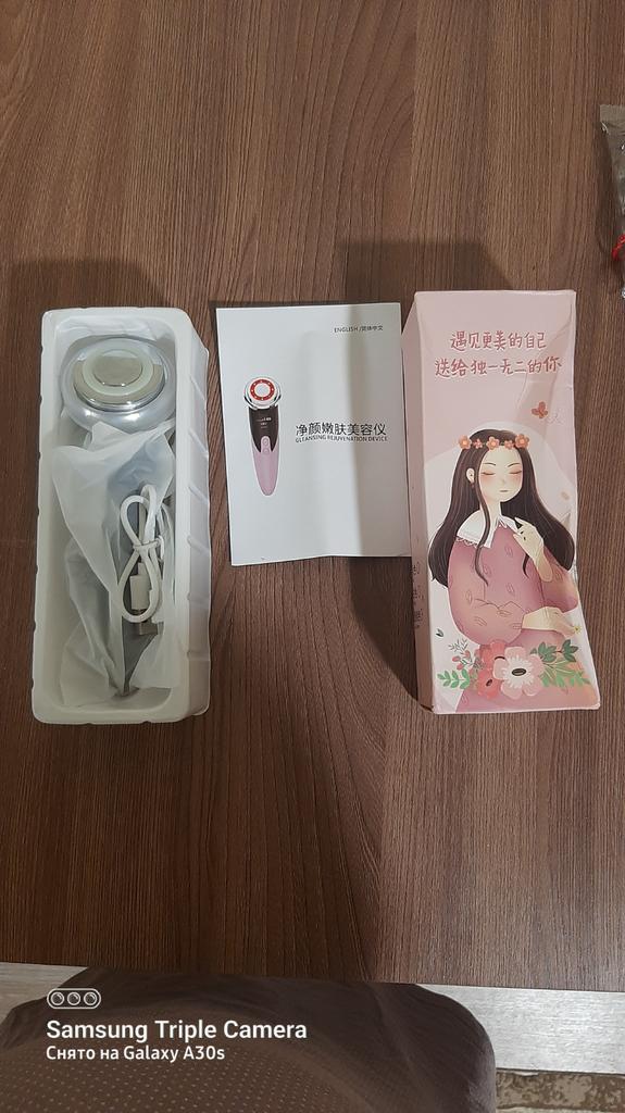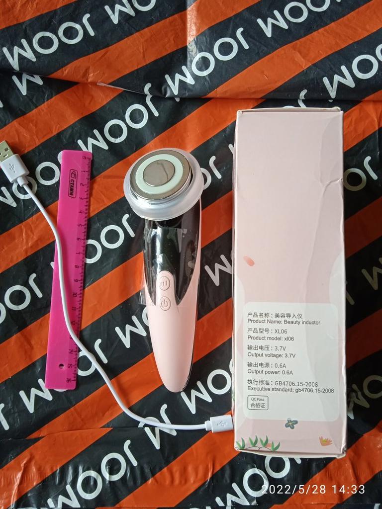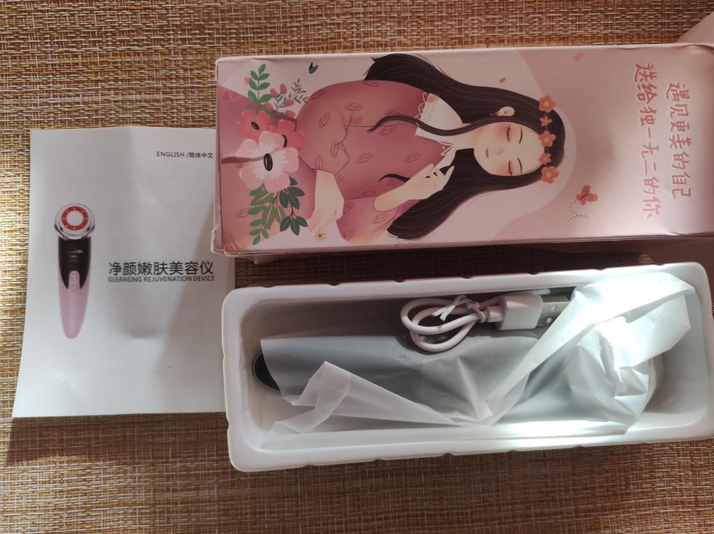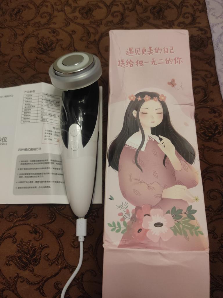 No packaging. The machine is lightweight, 3 speeds, heated. The seller mixed up the usb cord ... I had to look for the right one at home. The effect is visible from the first time, the main thing is not to be lazy