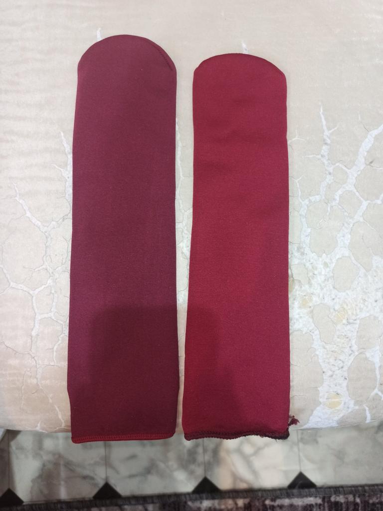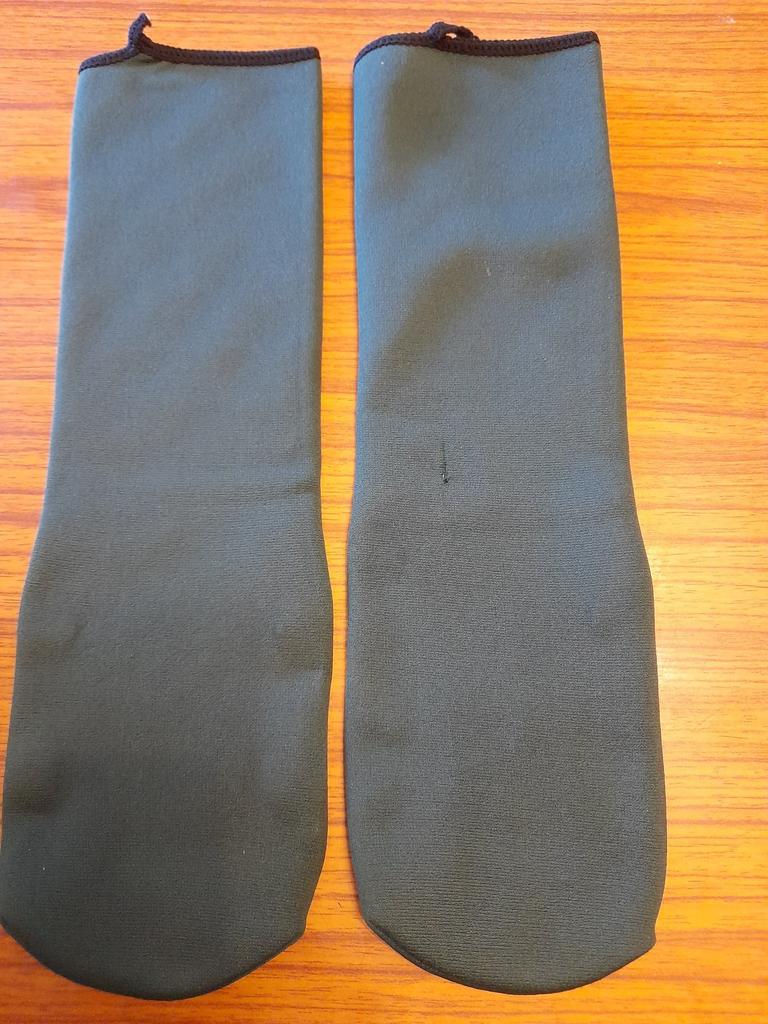 Socks are good. By the elastic band, for a child or a very thin leg in volume. I cut off the elastic band, the edge doesn't fray. They stretch very well and are warm.