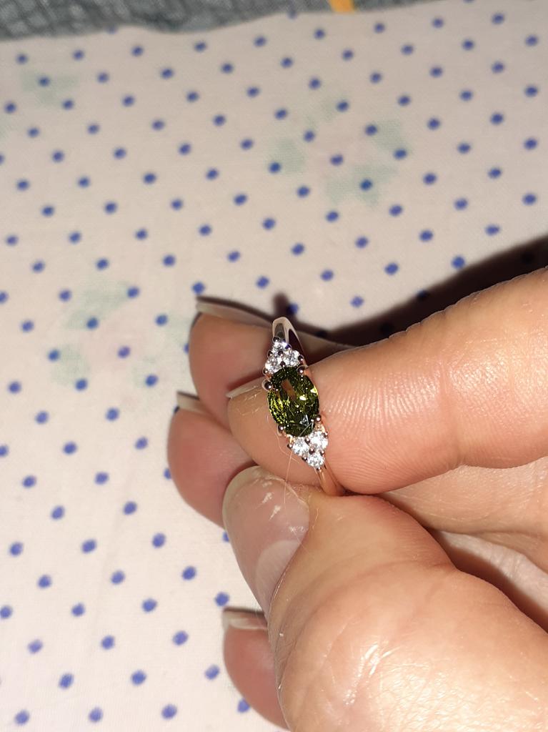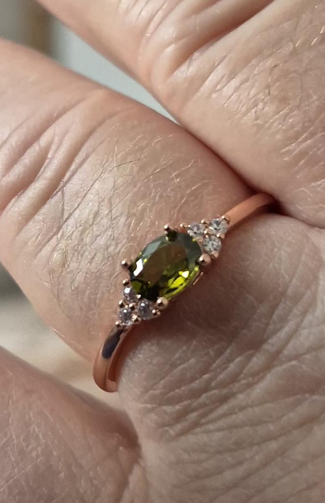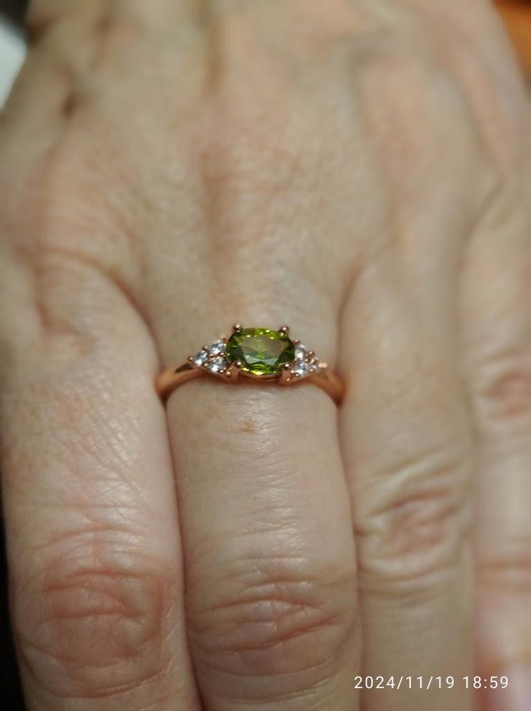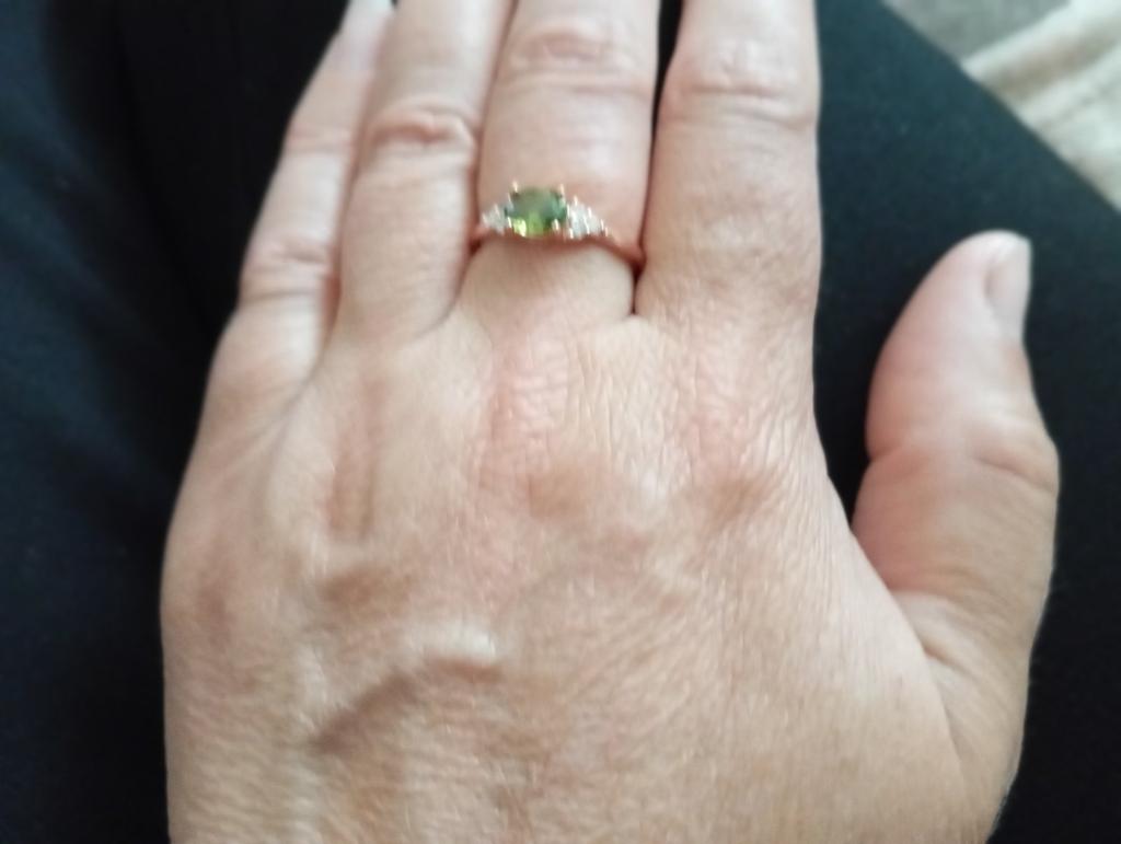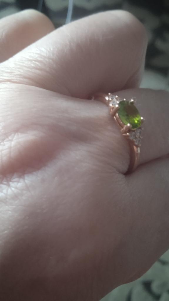 Very pretty ring, the size is perfect, the color matches the peridot for the choker, thank you.