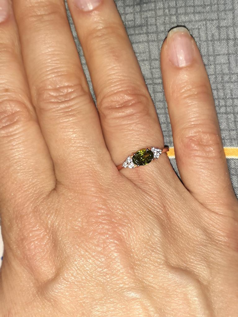 My daughter really likes the ring with the olive stone and wears it with pleasure, thank you.