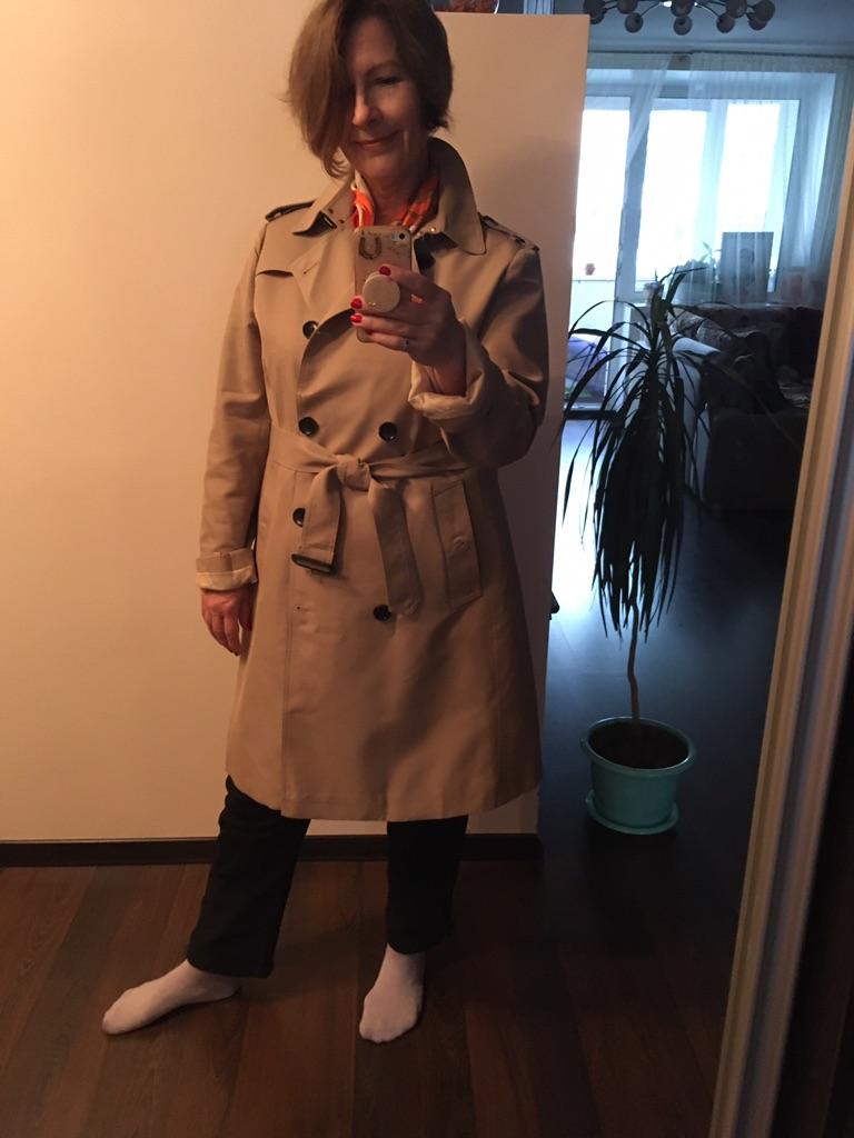 The coat is just great! The color is not transferable. Size M, took XL. Everything fit perfectly
