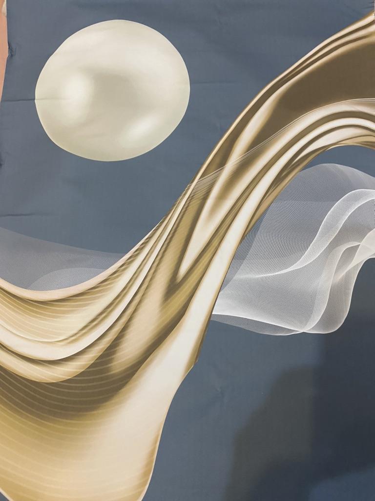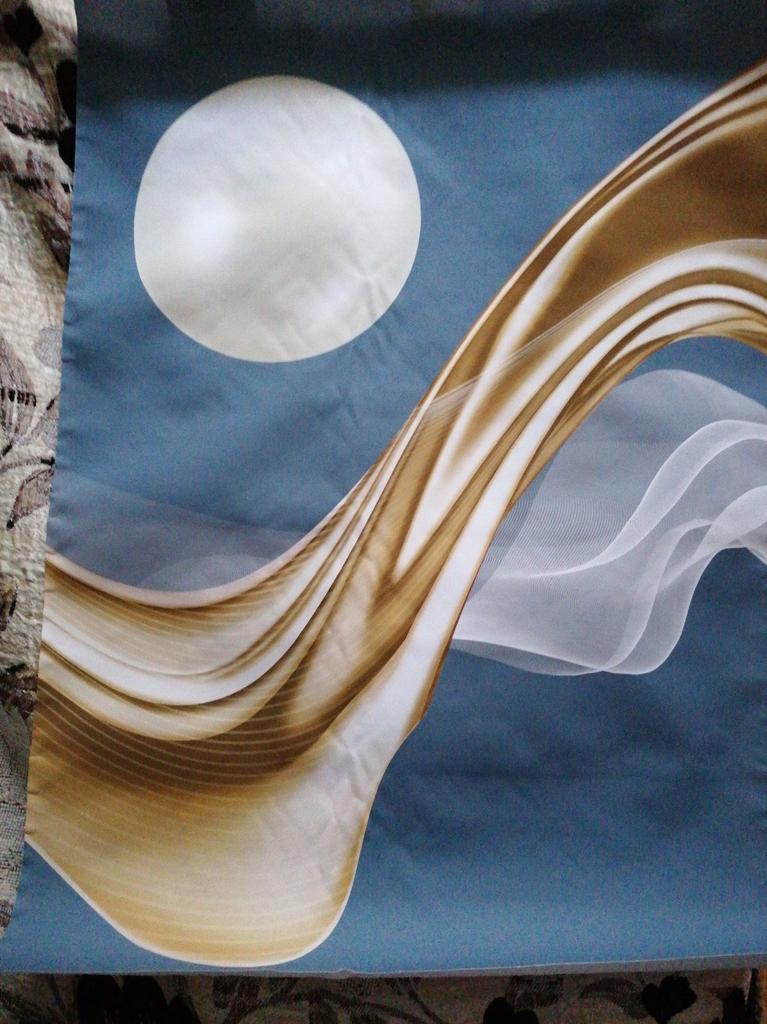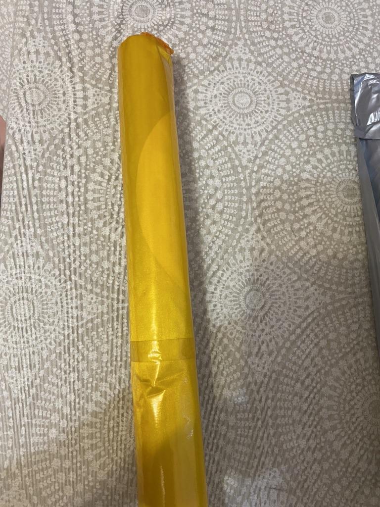 Bright thin fabric, or maybe not fabric like a thick plastic bag, but it looks good in a frame, thank you, most likely it’s silk