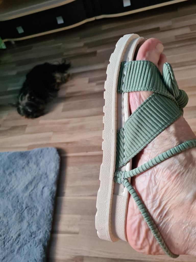 When walking they make completely indecent sounds. I doubt it’s possible to walk outside; it’s unpleasant to walk around the house at night. Perhaps because of the strange holes in the sole. Size: for very wide feet and long toes, huge neckline.