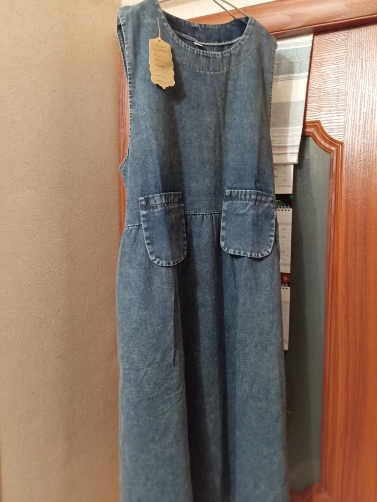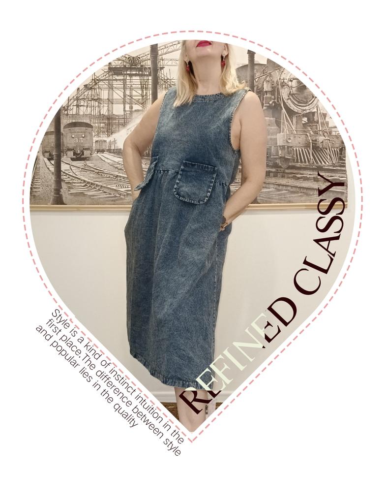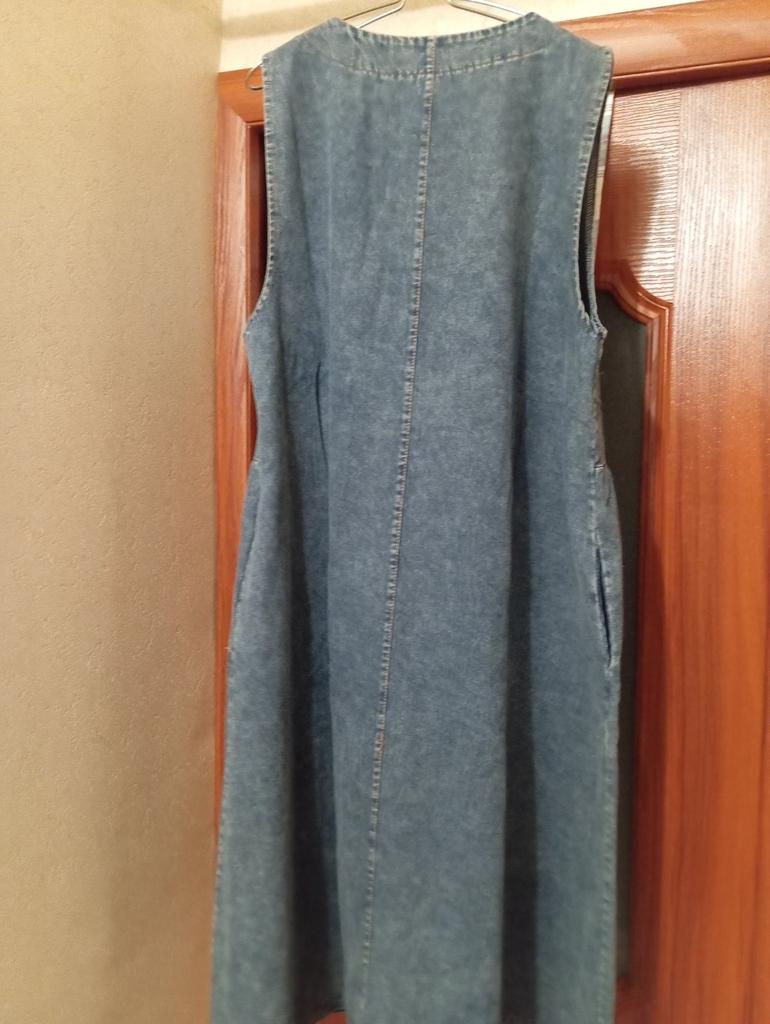 DIMANAF Plus Size Autumn Dress Denim Sleeveless Women Elegant Cotton Outerwear Long Dress Loose Casual Oversize Clothing A