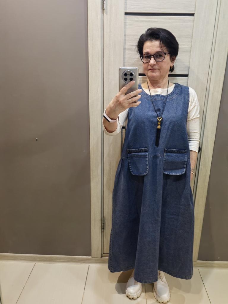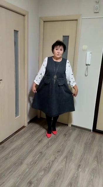 I wear the dress with great pleasure. Stylish and comfortable f. Thank you.