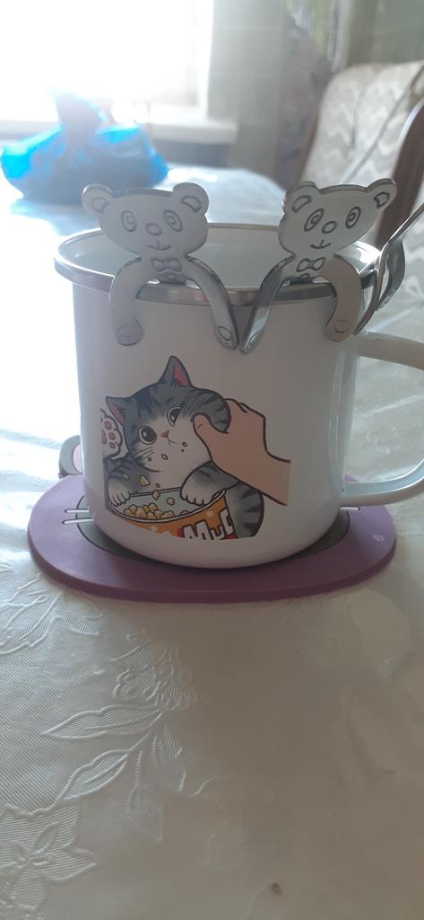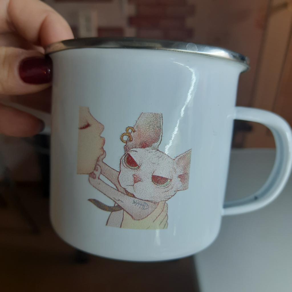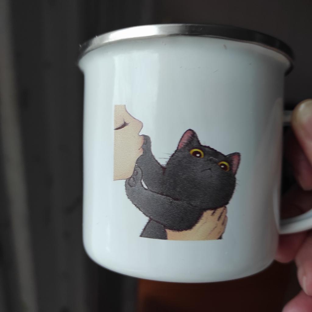 Cartoon Cat Print Enamel Coffee Tea Mugs Cute Animal Breakfast Dessert Milk Water Cups Love Cat Home Drinkware Best Friend Gifts