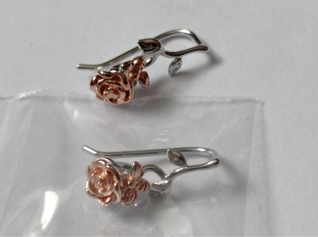 BAMOER Genuine 925 Sterling Silver 3D Rose Stud Earrings Fine Making Jewelry Wedding Party Gift Flower Piercing Earrings
