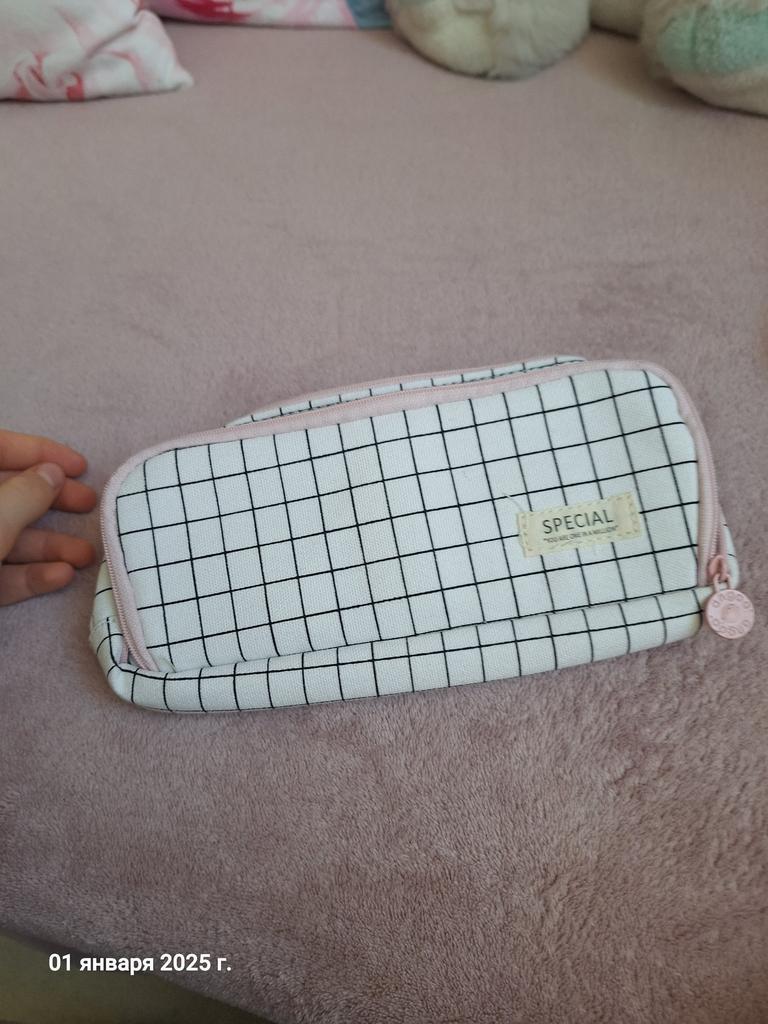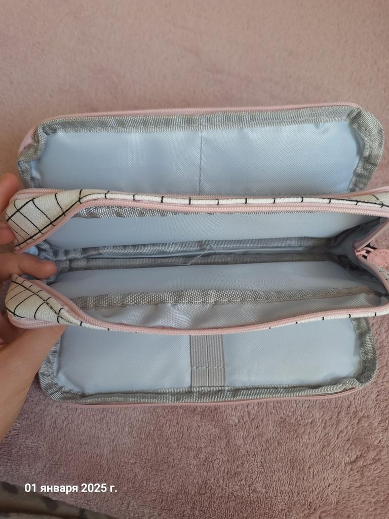 A beautiful pencil case, capacious, can be washed in a washing machine. The child is very pleased, this is his favorite thing. The parcel arrived in 20 days.