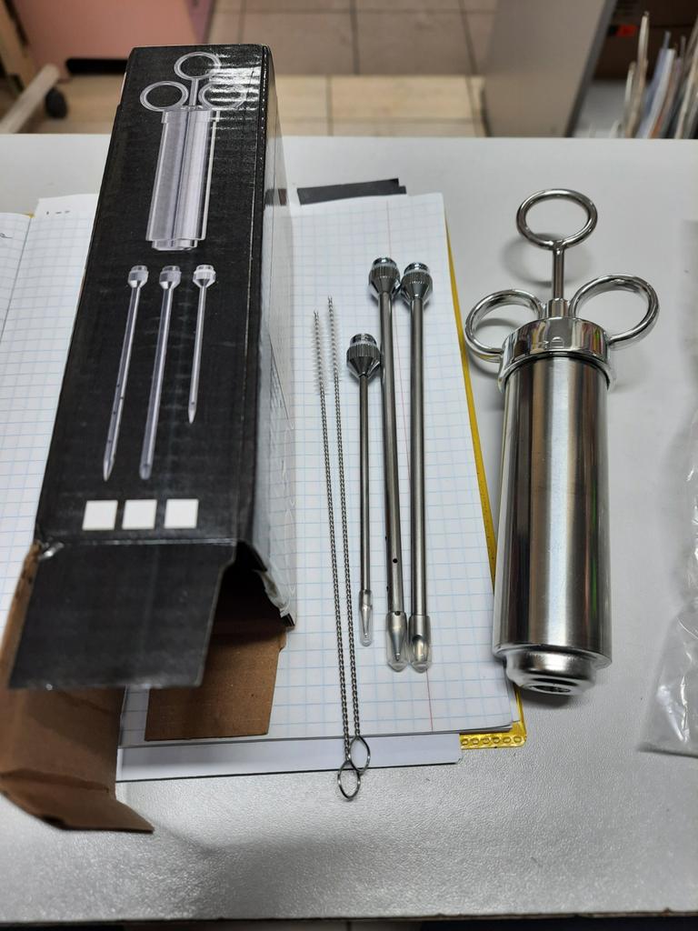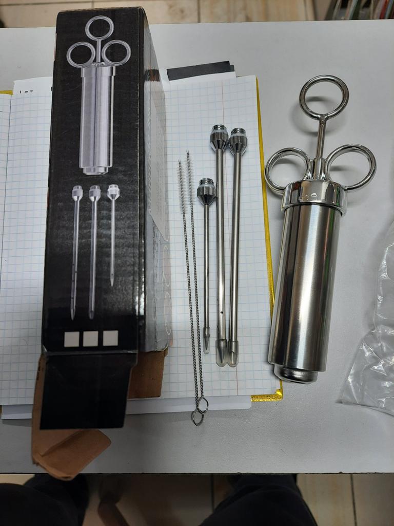 Liked the syringe. Quite large. 3 different needles with different bores. There are spare rubber gaskets for the needles and plunger. 2 brushes for cleaning the needles. The product is good. I recommend it.