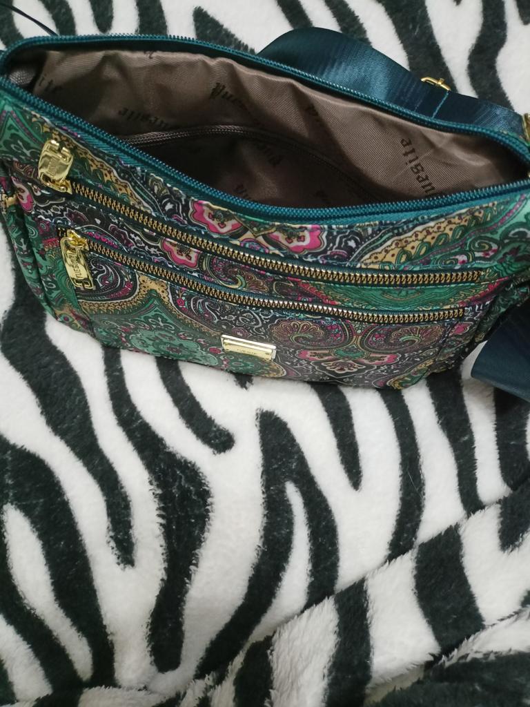 Beautiful bag, quality accessories, very comfortable size and many pockets. Beautiful bright picture