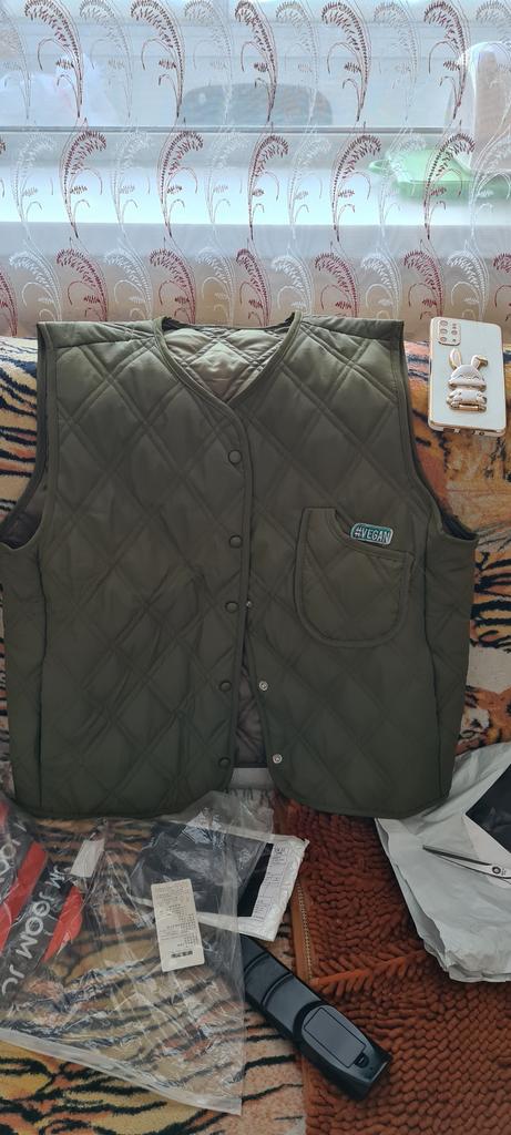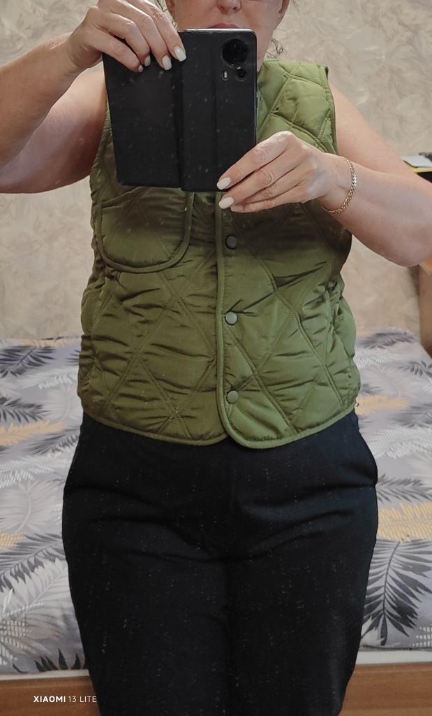 A wonderful vest, a small pocket for a phone, two pockets on the sides, without a zipper, quilted.