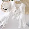 Features: flared sleeves, ruffles, ties, cropped, sunscreen, cardigan, top, Women's outer layer