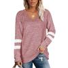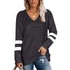 Women's Long-sleeved Color-blocking V-neck Loose Casual T-shirt Fashionable and Versatile Tops