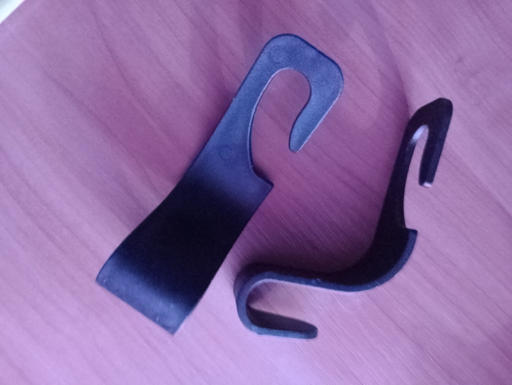 Good hooks. Made of solid plastic. I've already attached them to the headrest posts. They don't stick out much, don't get in the way. They hold bags. Thank you!