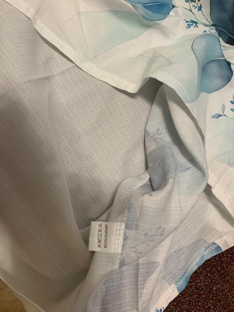 Not sewn as in the picture. On the chest there is just a gather, without a beautiful (in the picture) lapel. Very thin plain crinkled cotton fabric of low quality. Underwear and body are translucent. Fits true to size.