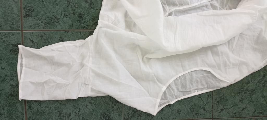 The volume of the sleeves, armholes, yours is 40, mine is 50... narrow, the cutting line runs along the bust line, it’s ugly, on the sample model the cutting strip runs below the bust line... The blouse runs small in the sleeves and chest.