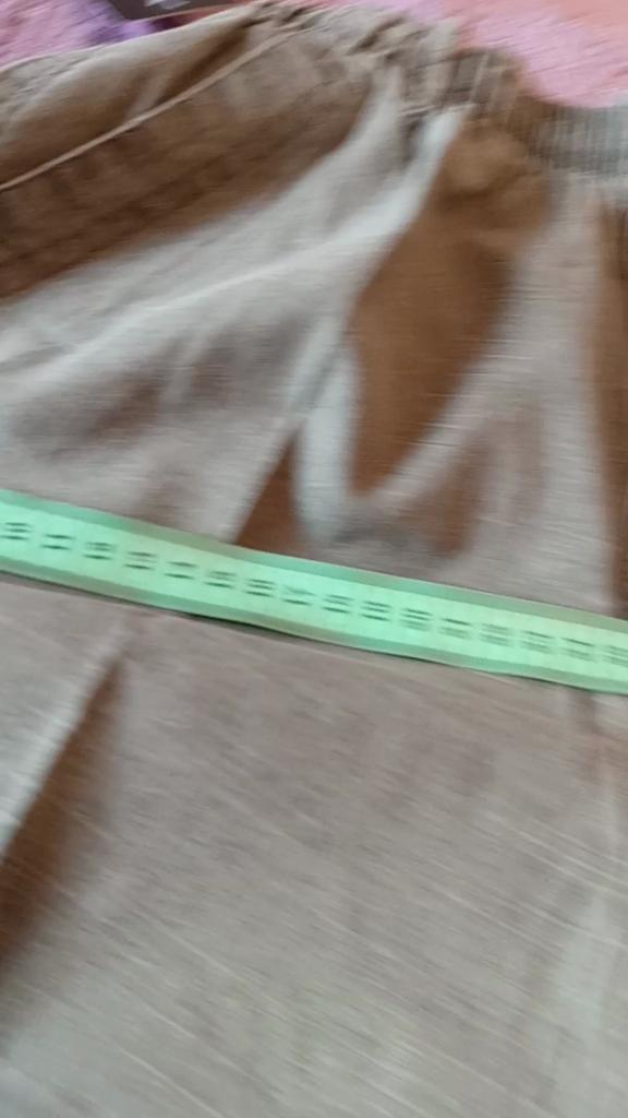 Thin summer trousers. Great for the heat. Too bad summer is ending. Elastic. High waist. There is also a drawstring. The color matches.
