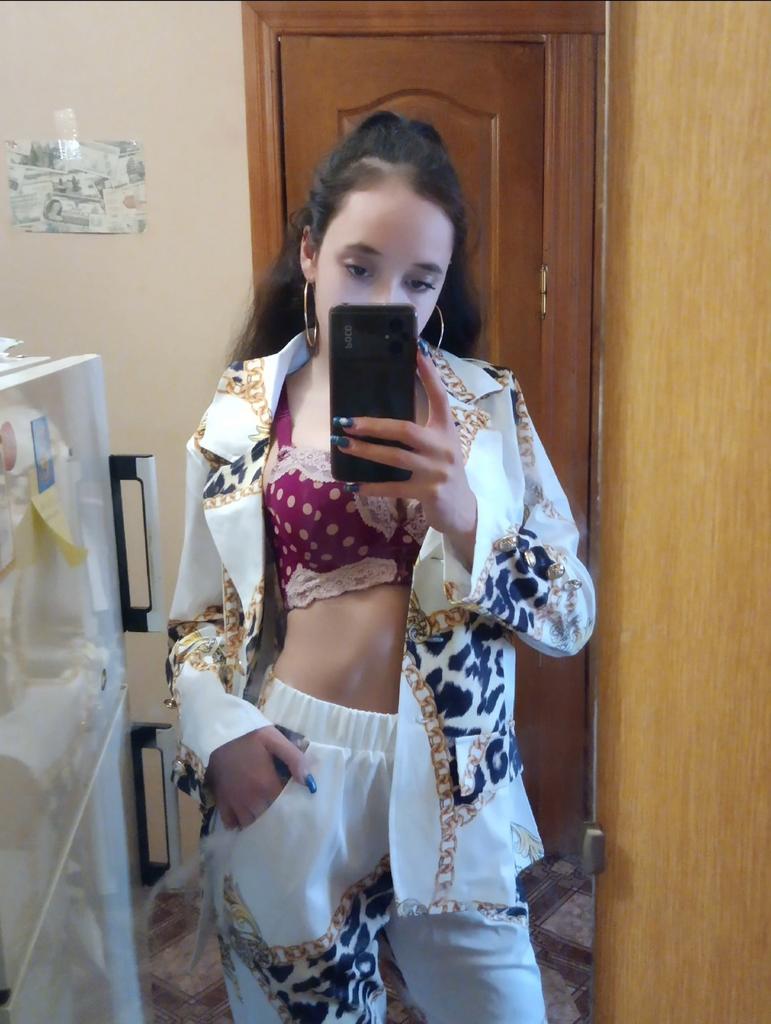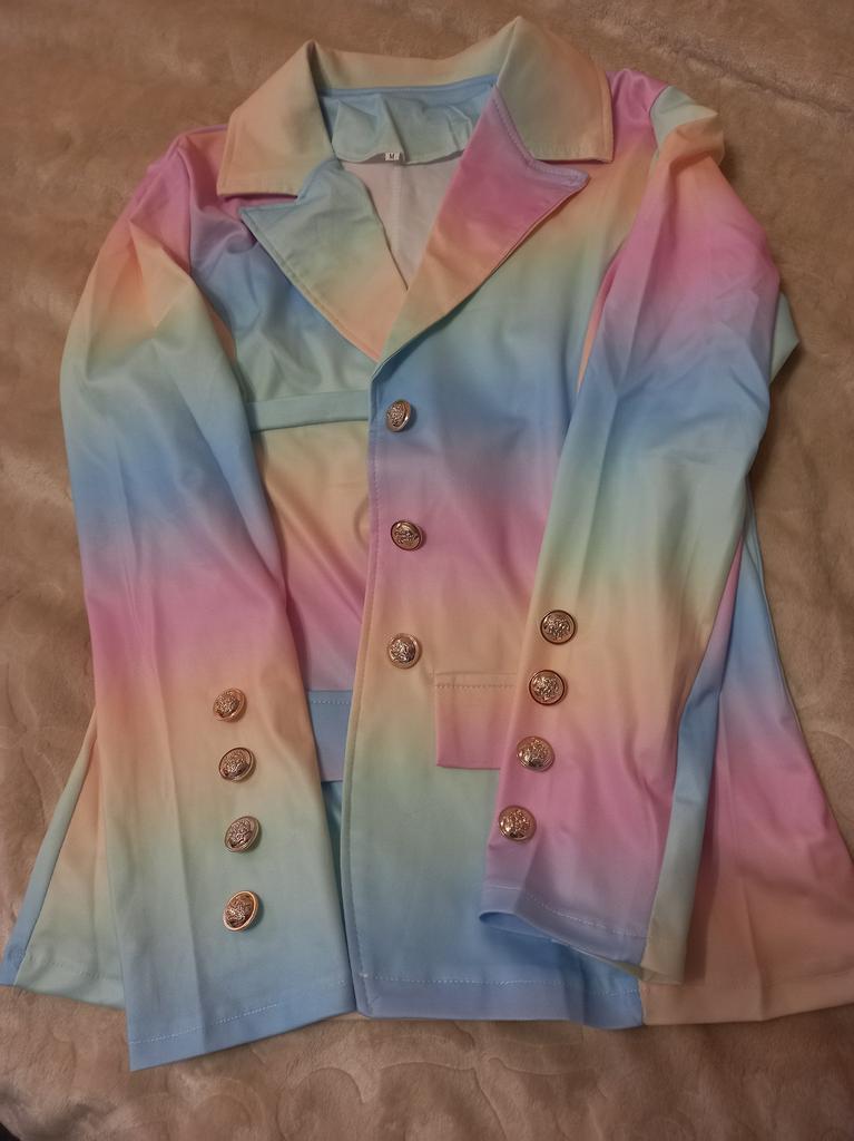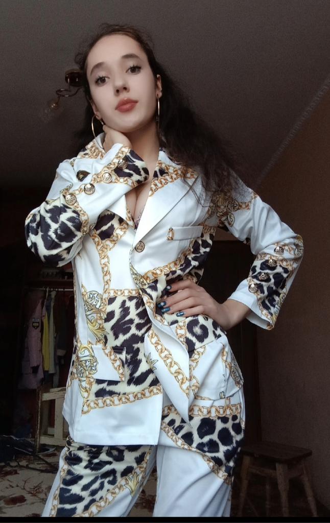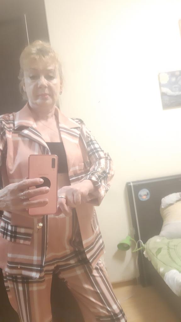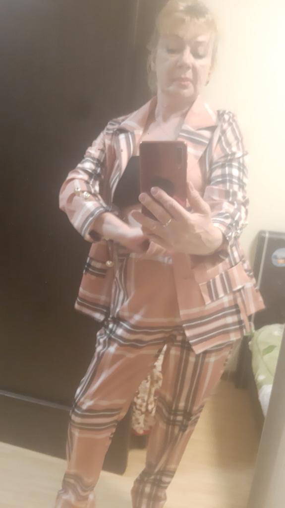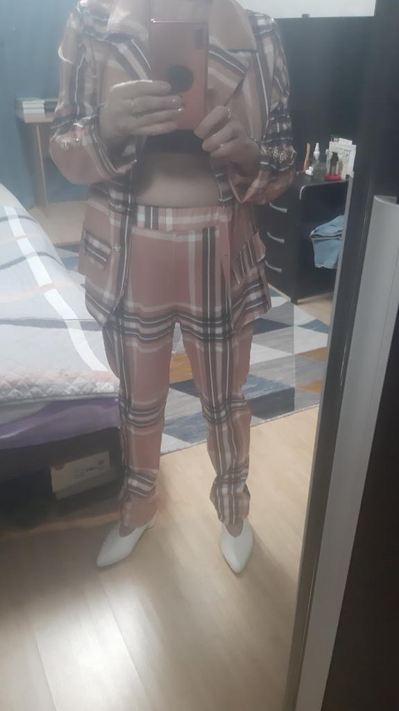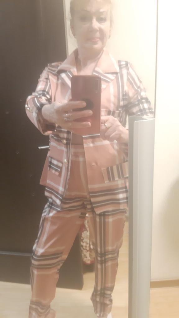 The color is as in the description, bright, beautiful, and the pants fit, the length is removable, and the jacket is a size 46, it fits a size 50! And now oversize is in fashion:)