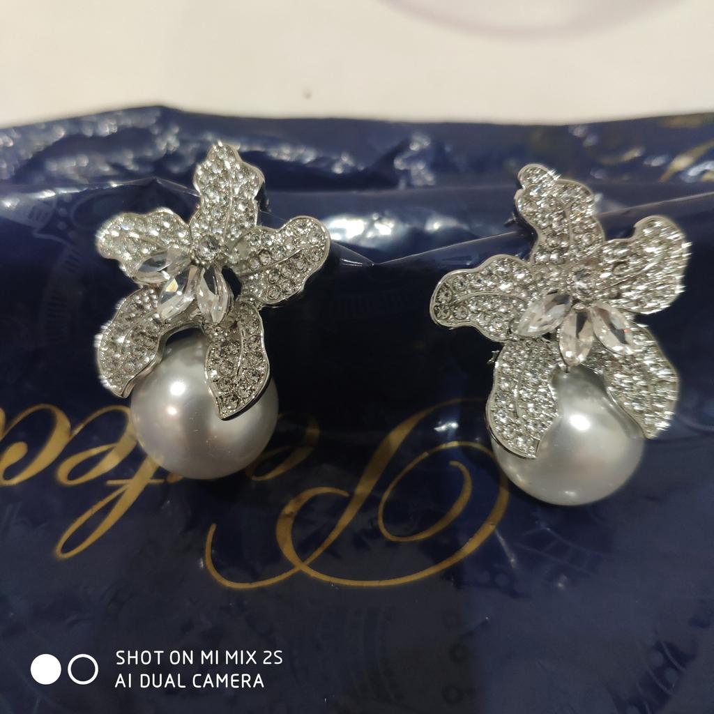 Two-color Lily Earrings Female Luxury Temperament Imitation Pearl Earrings Personalized Joker Earrings.