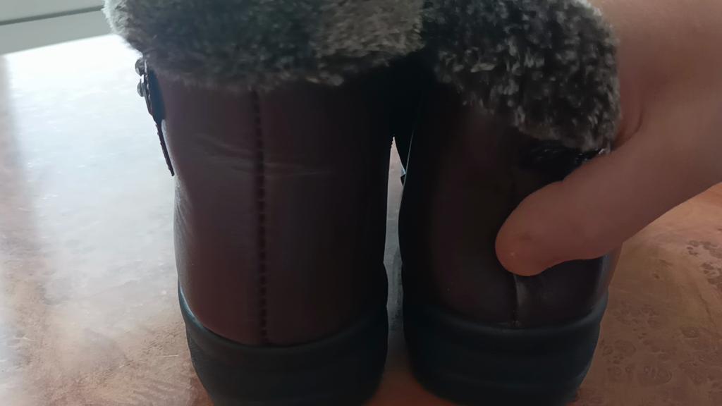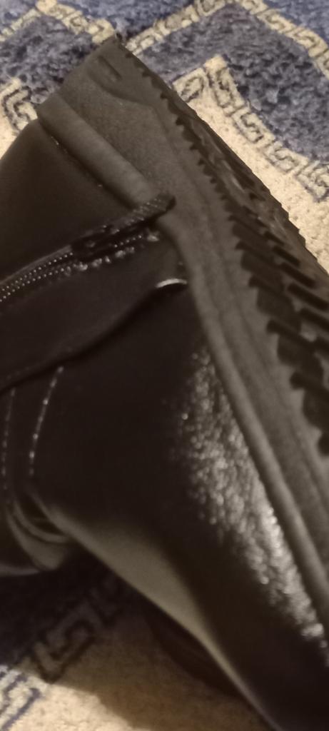 It's such a pity that they are too small, well, I've been trying to wear them in for days. According to the chart, they are 26.5 cm, mine are 25.5, I thought there would be some room, but no. If it were leather, it would stretch over time. And these boots don't have a chance, it's a shame. In the photo you can see how the toe sticks out, and the zipper won't close.