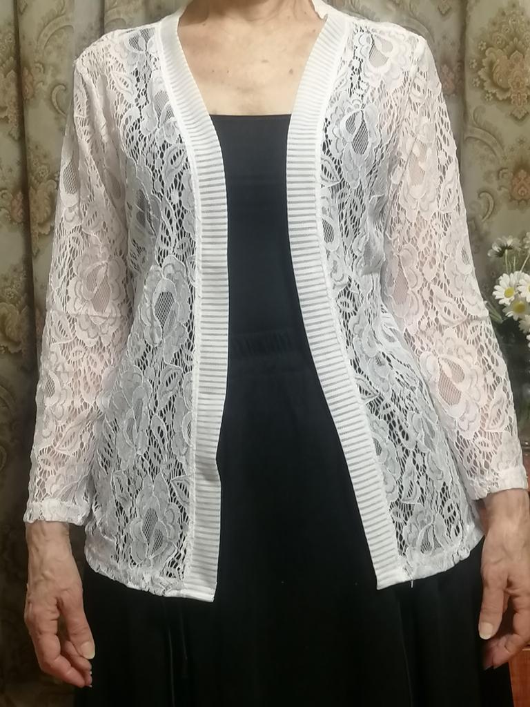 Beautiful lace cardigan. It fits a size 50 perfectly. Thank you.