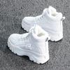Ladies Casual Sports Shoes Winter Sports Shoes Women's Warm Shoes with Plush Fur Leather Lace-up Platform Heighters