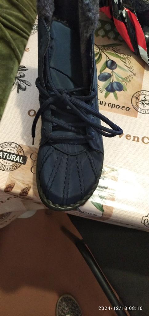 The boots are simply classy. They are not slippery, lightweight, and do not let moisture through. I took a size 39 for my size 40, and it just fit. I changed the laces to elastic ones. I wear them with pleasure. Thank you, Jum, and I recommend them to everyone.