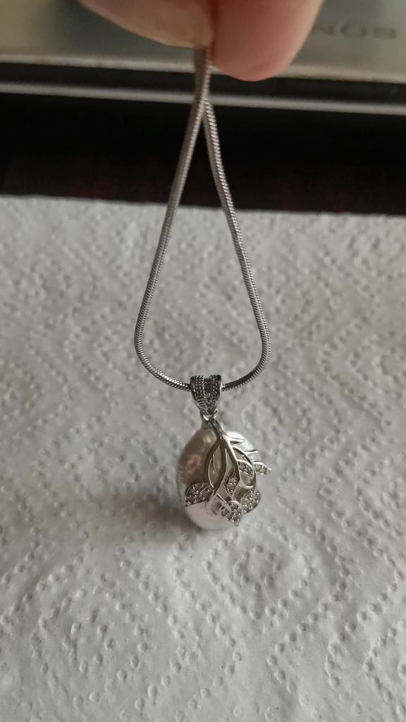 Beautiful natural large pearl pendant, the chain is extraordinary, I really liked it, fast delivery, thank you very much.