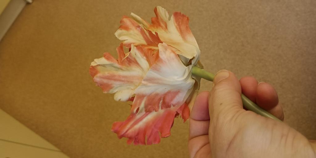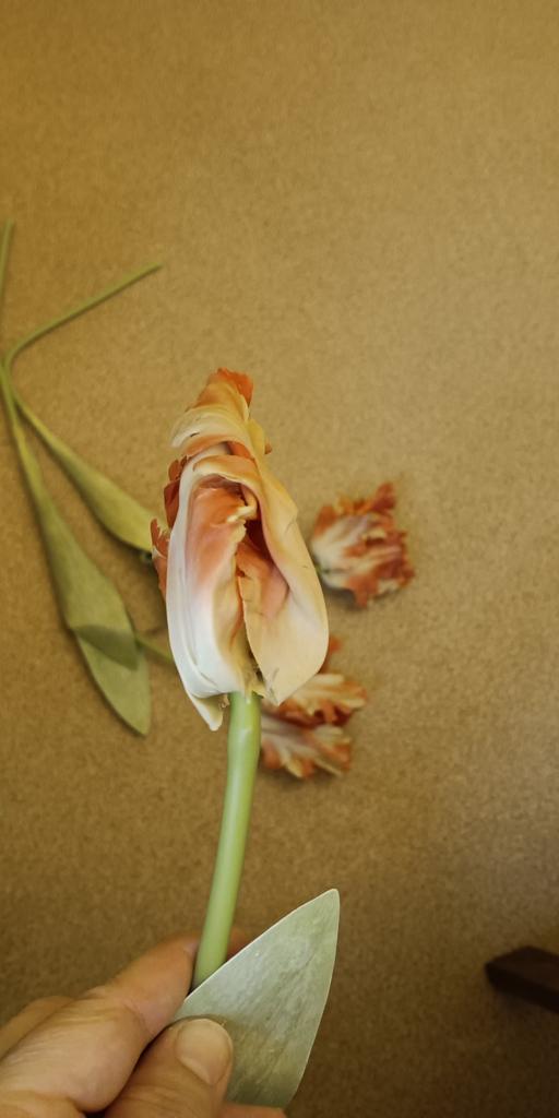 Very beautiful tulips. Folded too tightly during DELIVERY - >bend in the handle