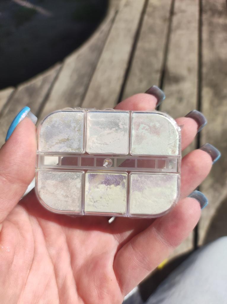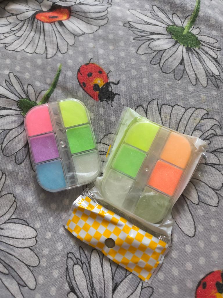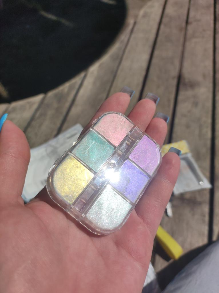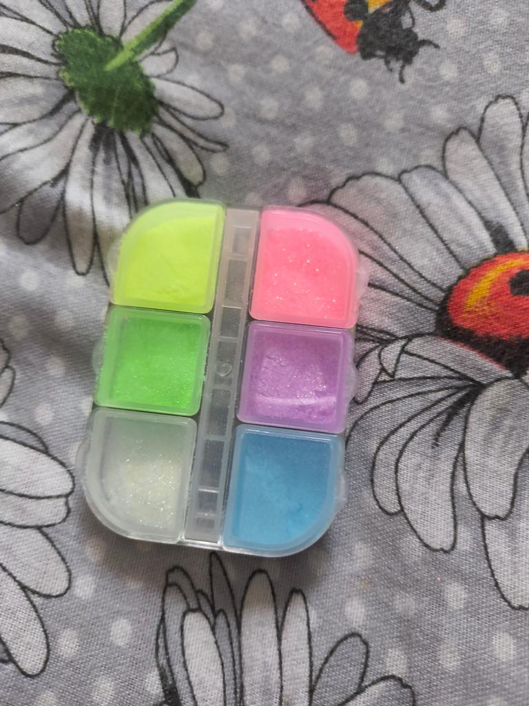 I would say that it is just glitter with powder. Do not rub in like a rub. If rubbed as a rub, the glitters fly off and only the powder remains. I ordered the glowing ones. Well, they don't glow like in the photo. But if you apply them with your finger and do not rub them hard, the glitters remain. Made yellow nails with this rub.