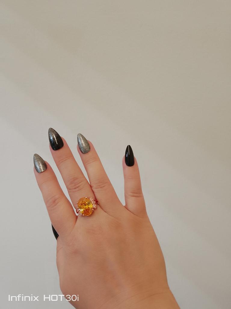 Beautiful ring. The stone is big and beautiful. It looks rich.