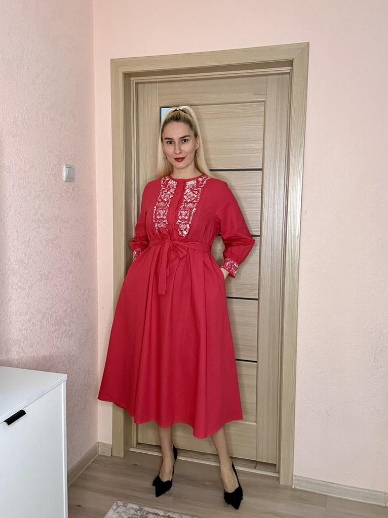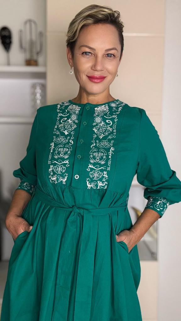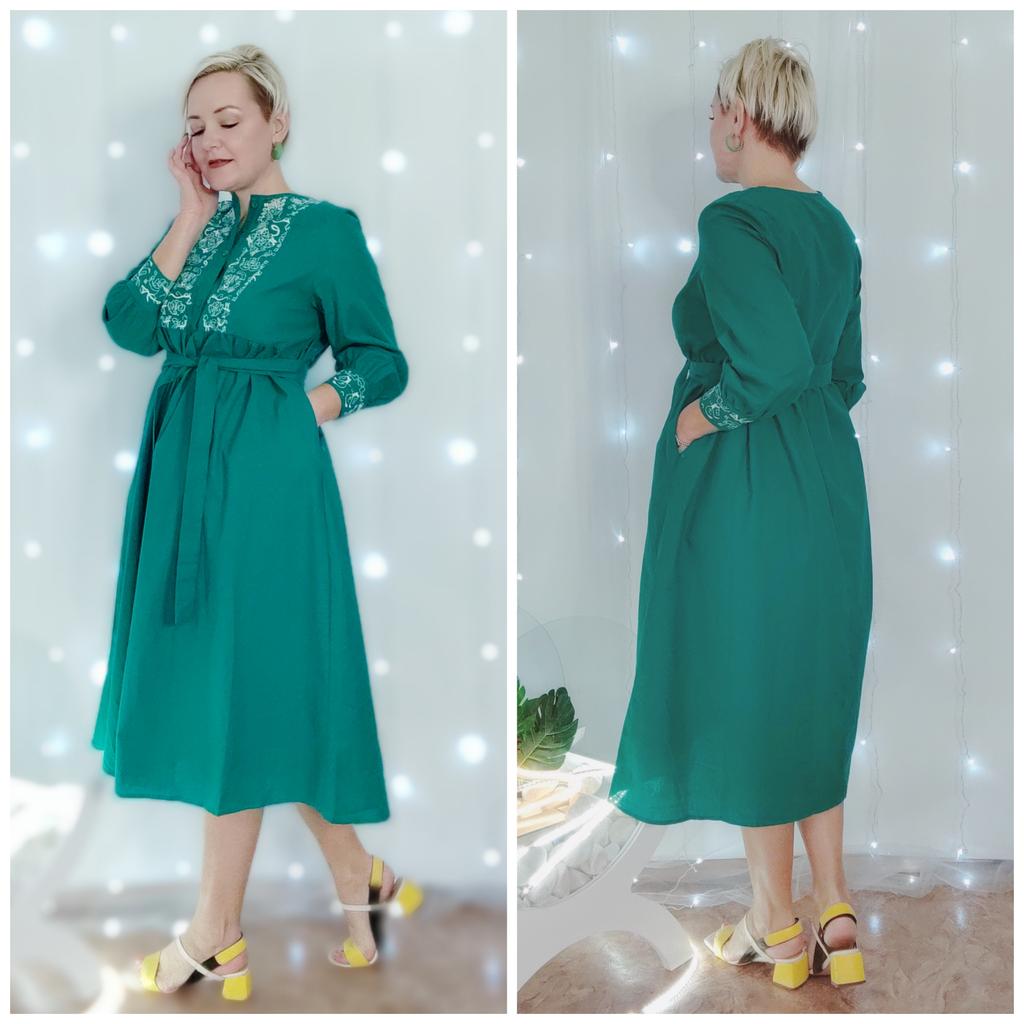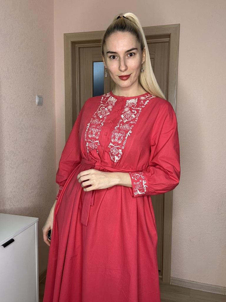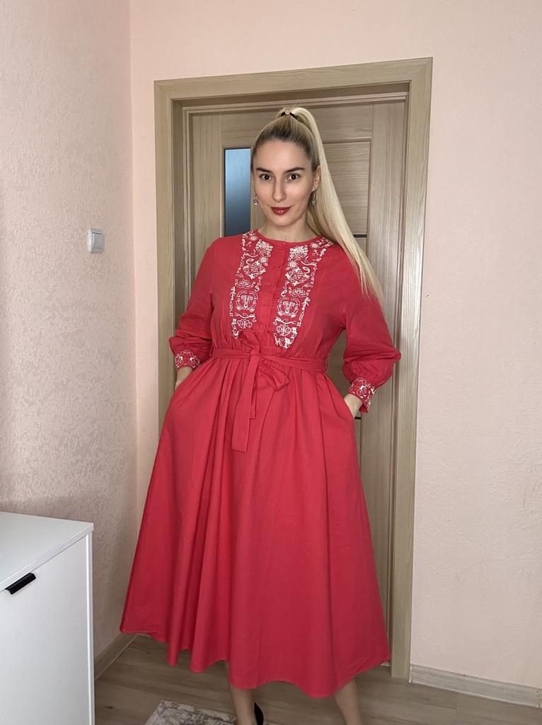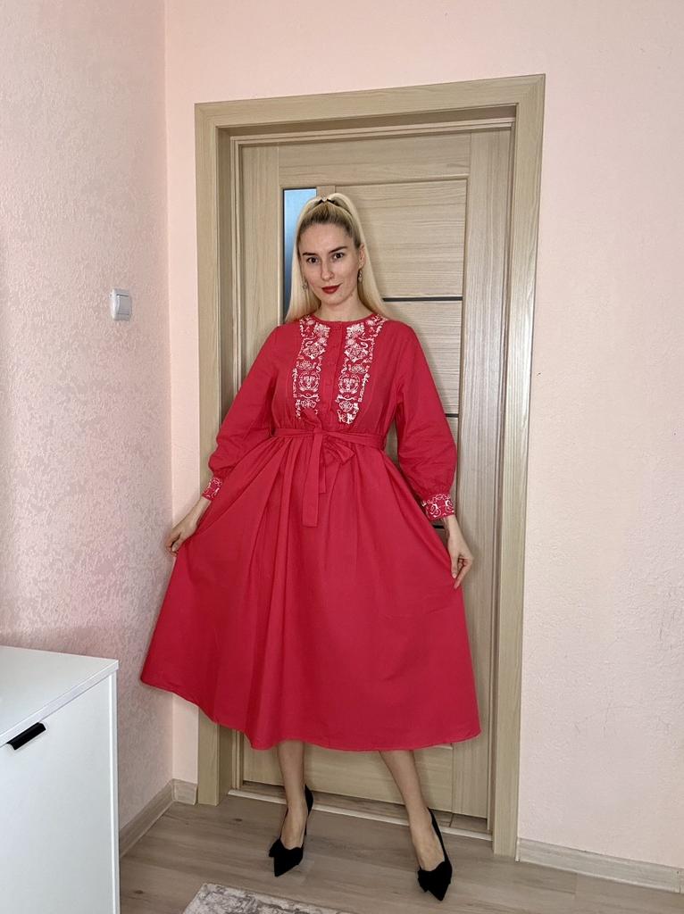 Bodycon Dress O Neck Embroidery Puff Sleeve Button Vestidos Ethnic Style Spring Folds Solid Color Dresses A-line