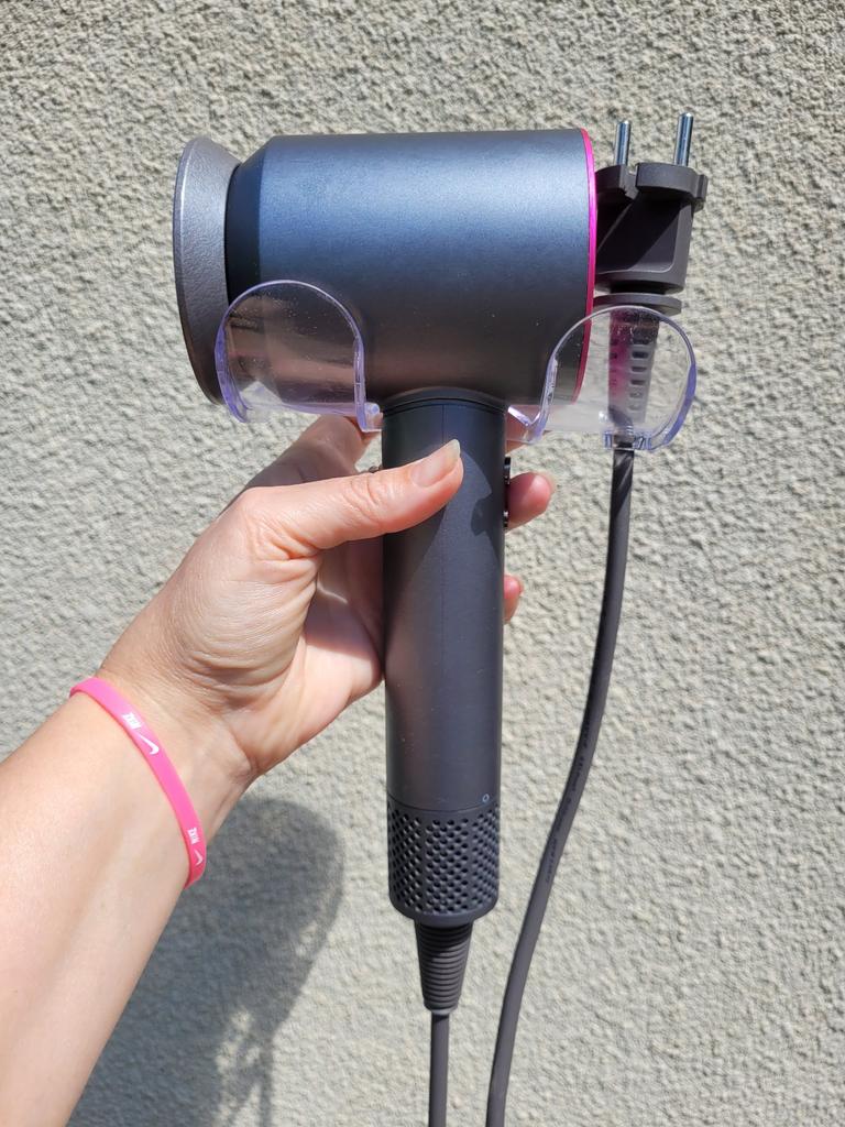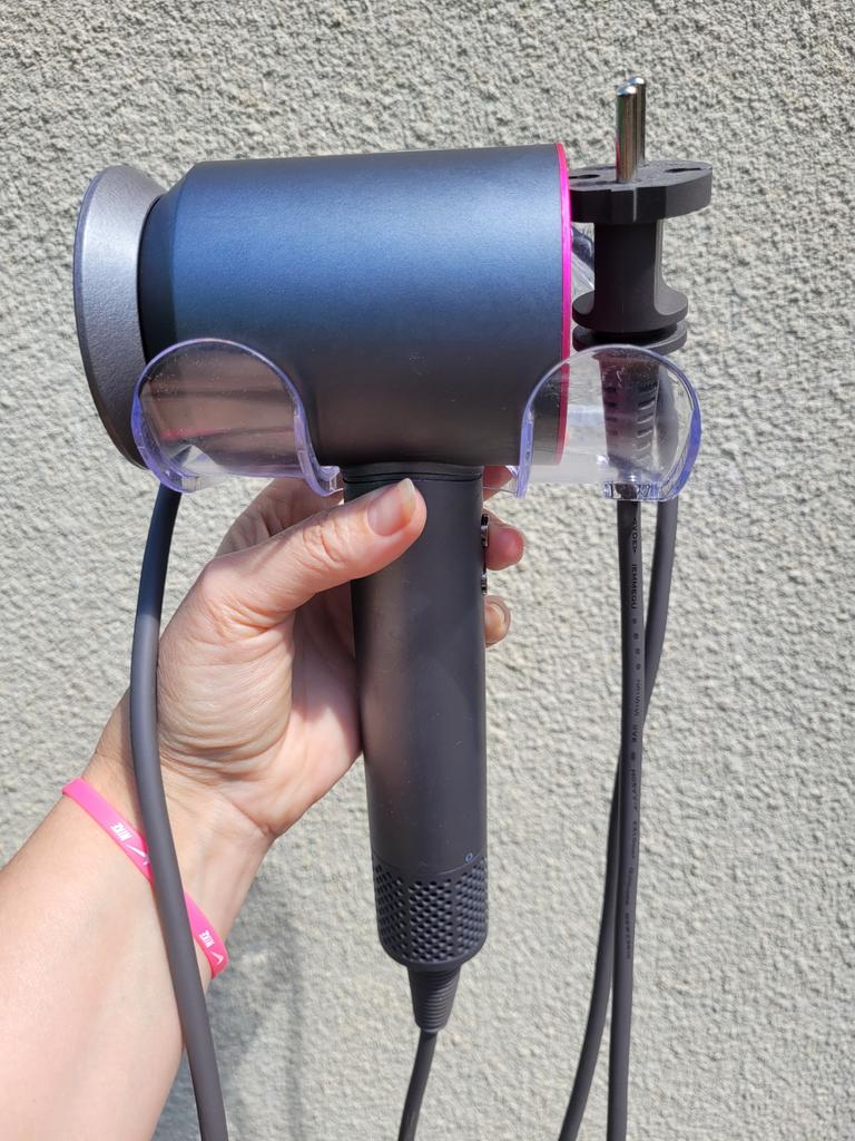 The curved front row prevents the hair dryer from falling, providing added peace of mind. Say goodbye to cluttered countertops and hello to a more organized home with the hair dryer holder.