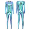 Women's Metallic Round Neck Long Sleeve One Piece Full Body Bodysuit Festival Jumpsuit