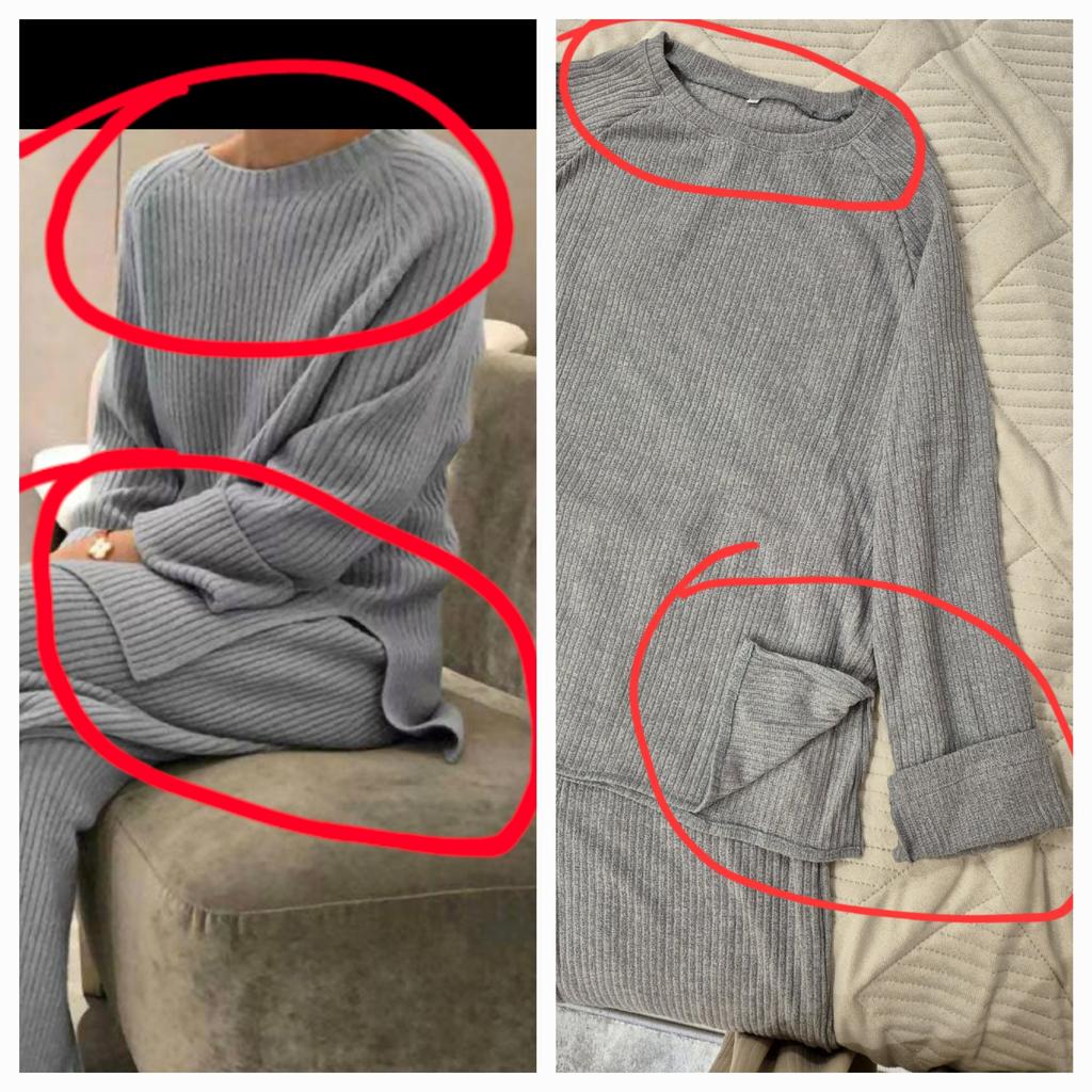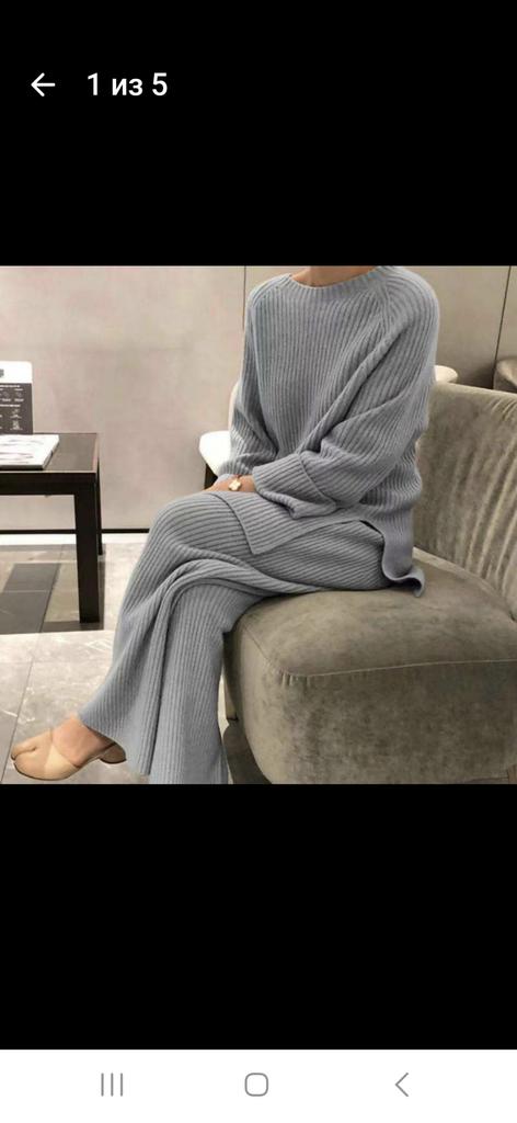Ladies Suit Long-sleeved Solid Color Knitted Casual Two-piece Suit