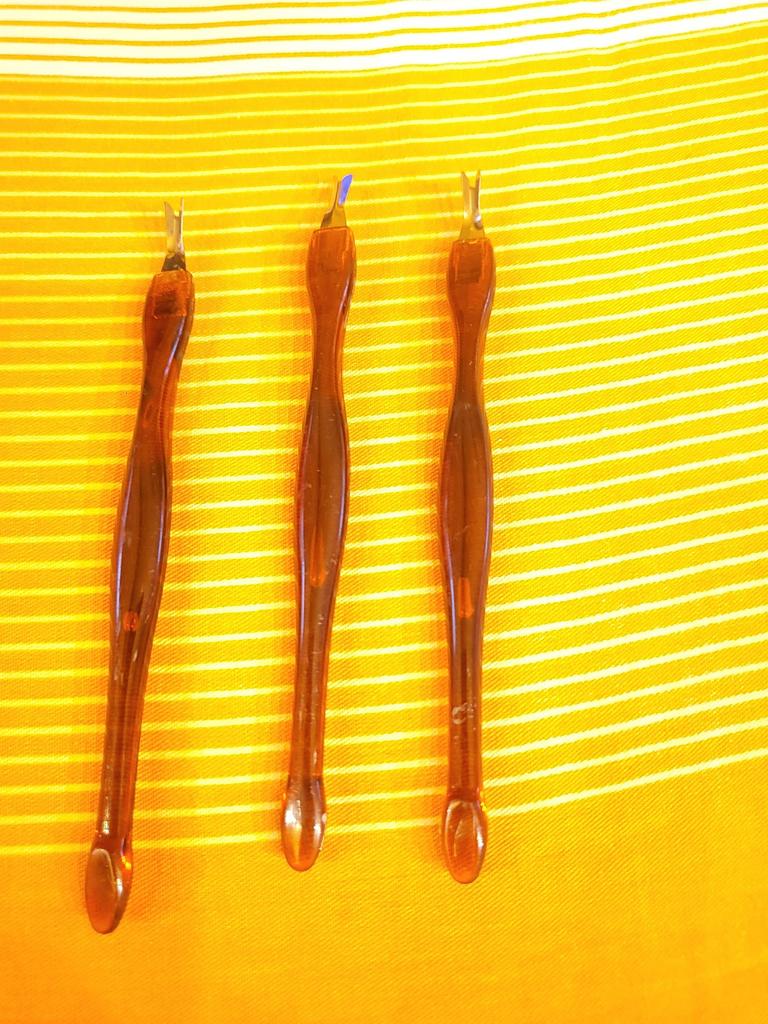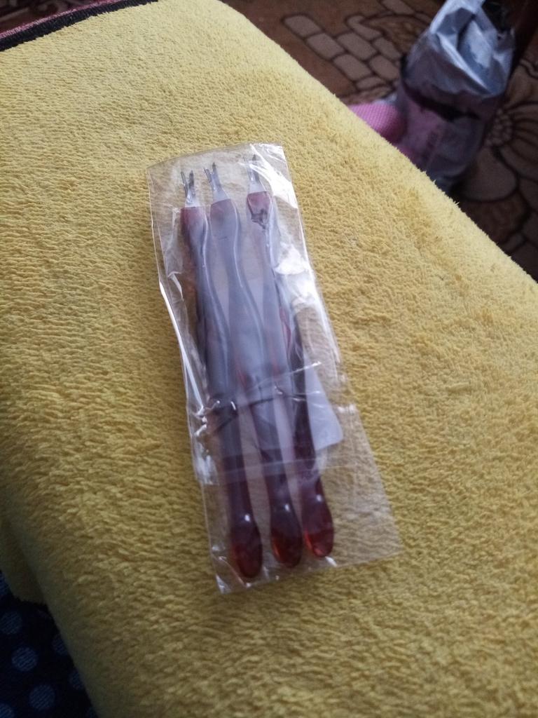 Good cuticle tool. Three pieces in the set. For its price, it's quite alright. Although, in my opinion, they are a bit dull.