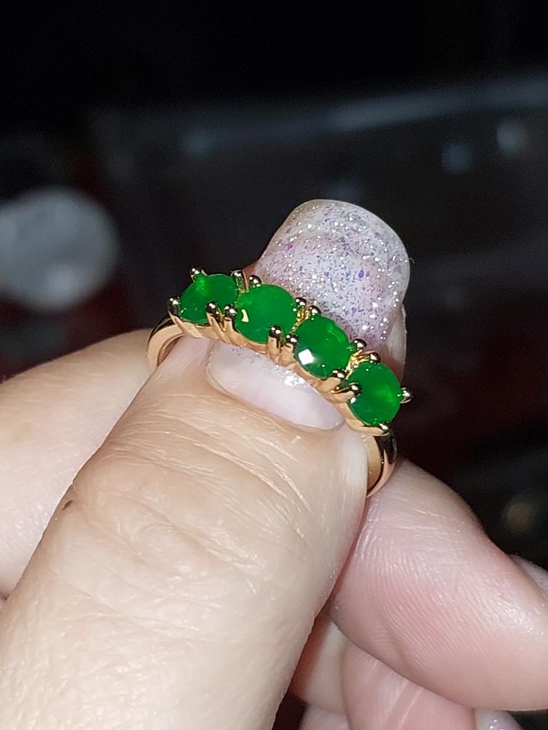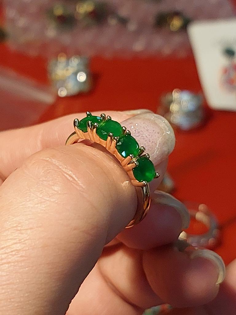 1 PC Emerald Green Round Cut Zircon Four Stone Ring for Women Luxury Golden Color Wedding Band Jewelry Valentine's Day Ring Gifts