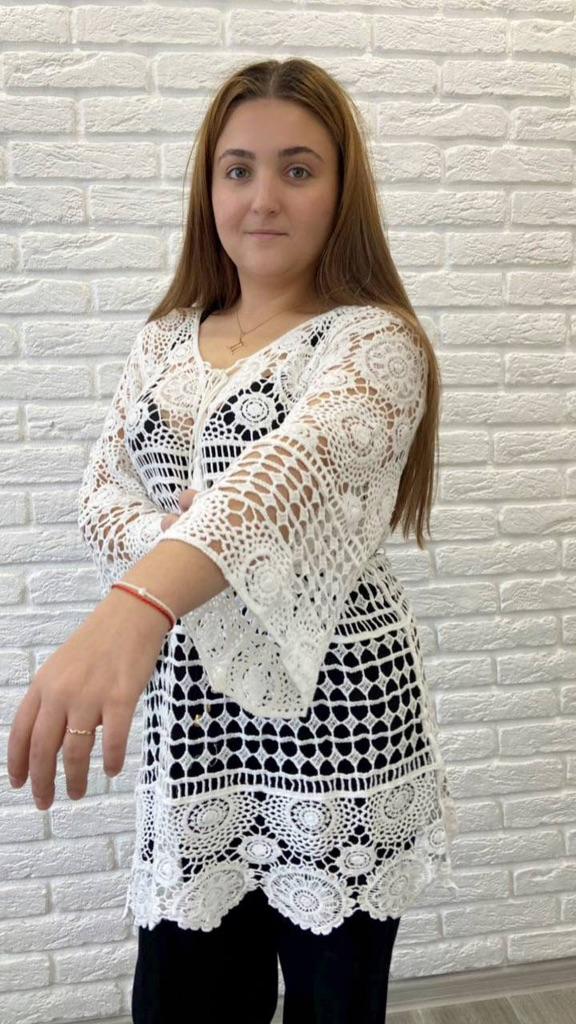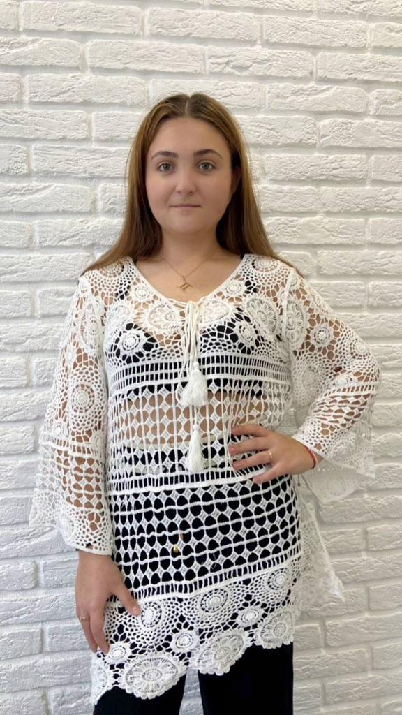 DIMANAF New 2024 T-Shirt Women Knitting Lace Long Sleeve O-Neck Hollow Summer Style Basic Tops Tees Loose White Clothing
