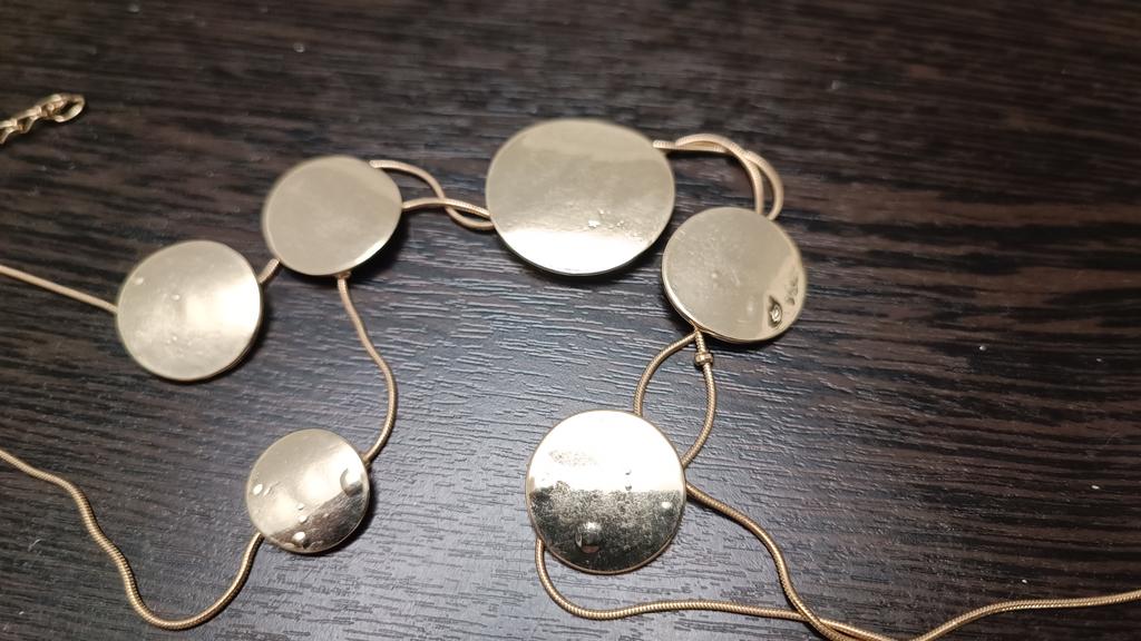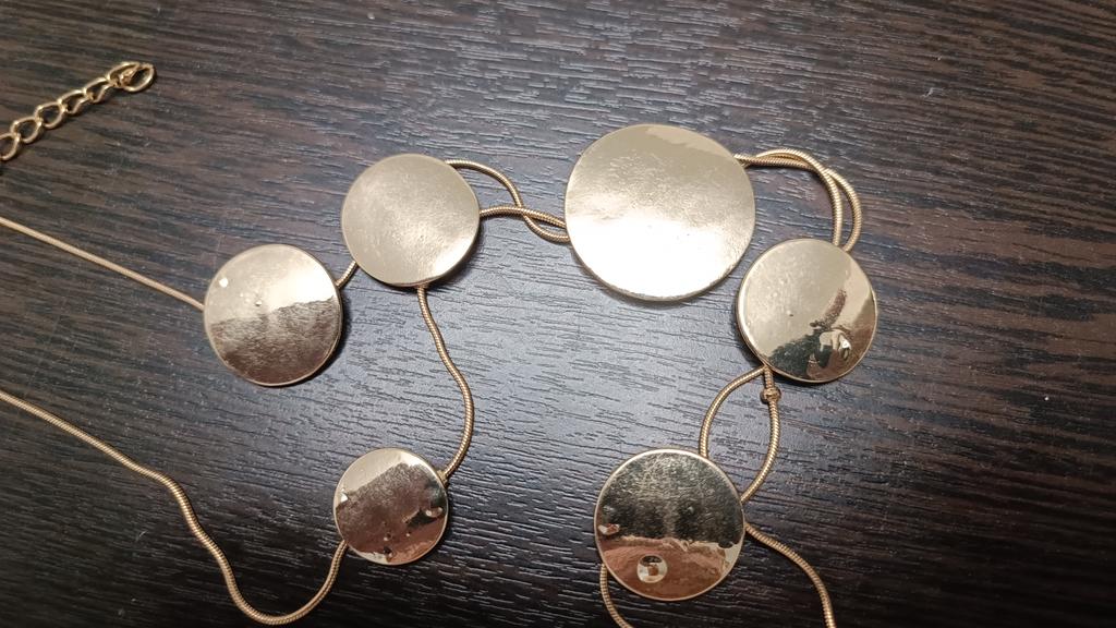 I thought the decoration would be more voluminous. The segments come off the chain, despite the fixators. A very impractical decoration for wearing. The circles turn over, they are not double-sided, so the view from the back is not very good. In such a decoration, you can only arrange photo shoots: put it on, straighten everything out with difficulty, and don't move, because the beauty will be ruined immediately. The idea is good and even beautiful, but the execution fell short