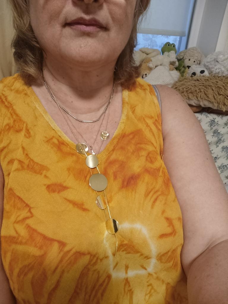 The round parts of the necklace do not correspond to the sizes in the photo on the website: they are all much smaller in size. Therefore, the entire necklace looks small. This is a deception of the buyer. I ask for a refund for deceiving the consumer!