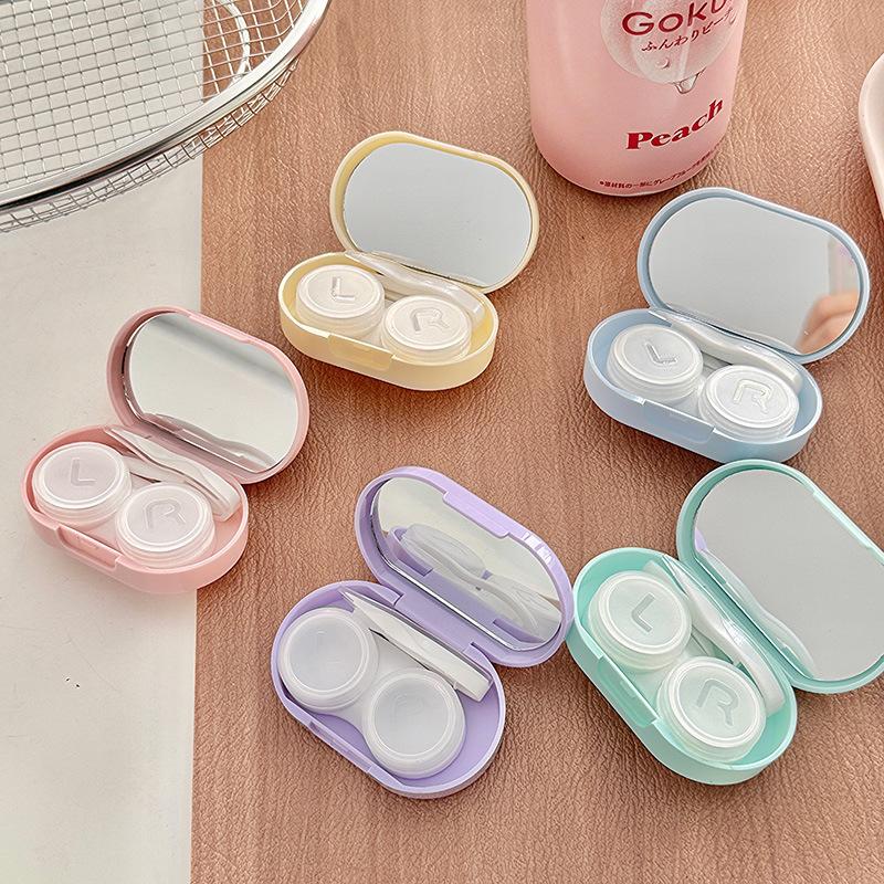 1pc Ins Letter Print Contact Lens Case Contact Lens Companion Box Beauty Eye Box Portable Contact Lens Box with Mirror Tweezers